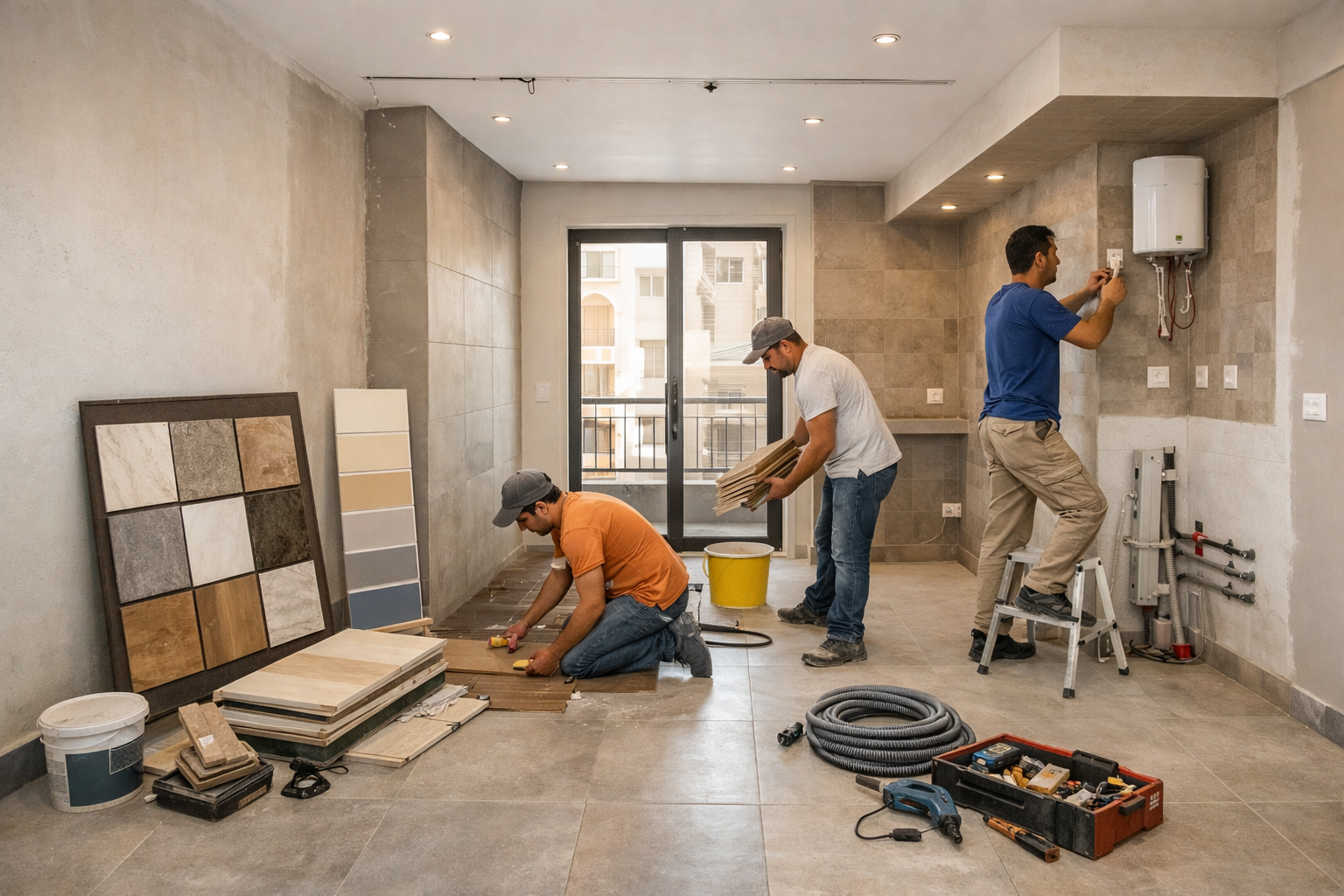 - ابدأ بالبنية التحتية: الكهرباء، السباكة، العزل، ثم انتقل إلى التشطيبات الظاهرة.