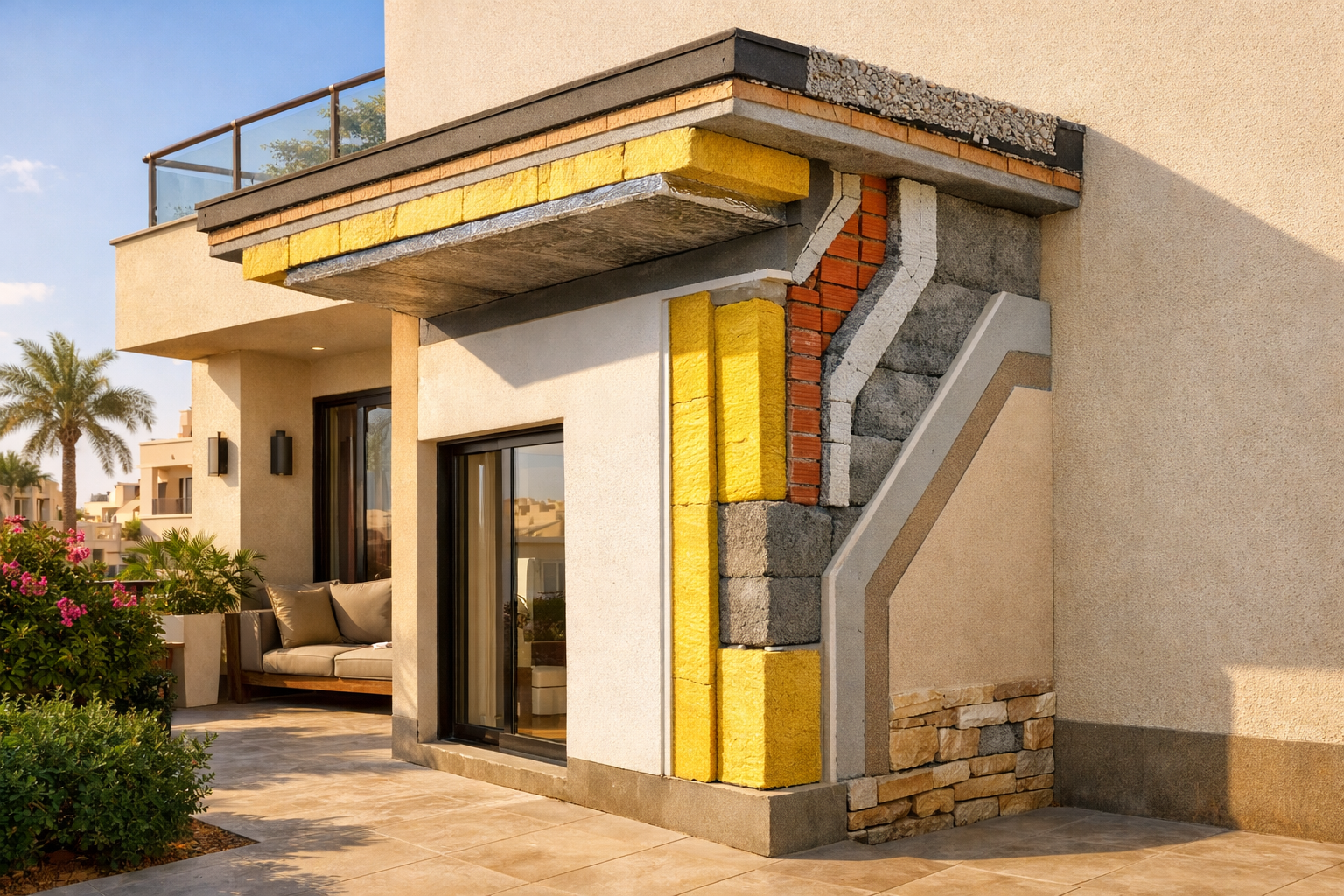 في البيوت المصرية، غالبًا ما يكون السقف من أكثر نقاط فقدان أو اكتساب الحرارة تأثيرًا، خاصة في الأدوار العليا وتحت الأسطح مباشرة. لذلك من المفيد أن يبدأ التخطيط للعزل من السقف، ثم الجدران الخارجية، ثم معالجة الفتحات مثل النوافذ والأبواب.