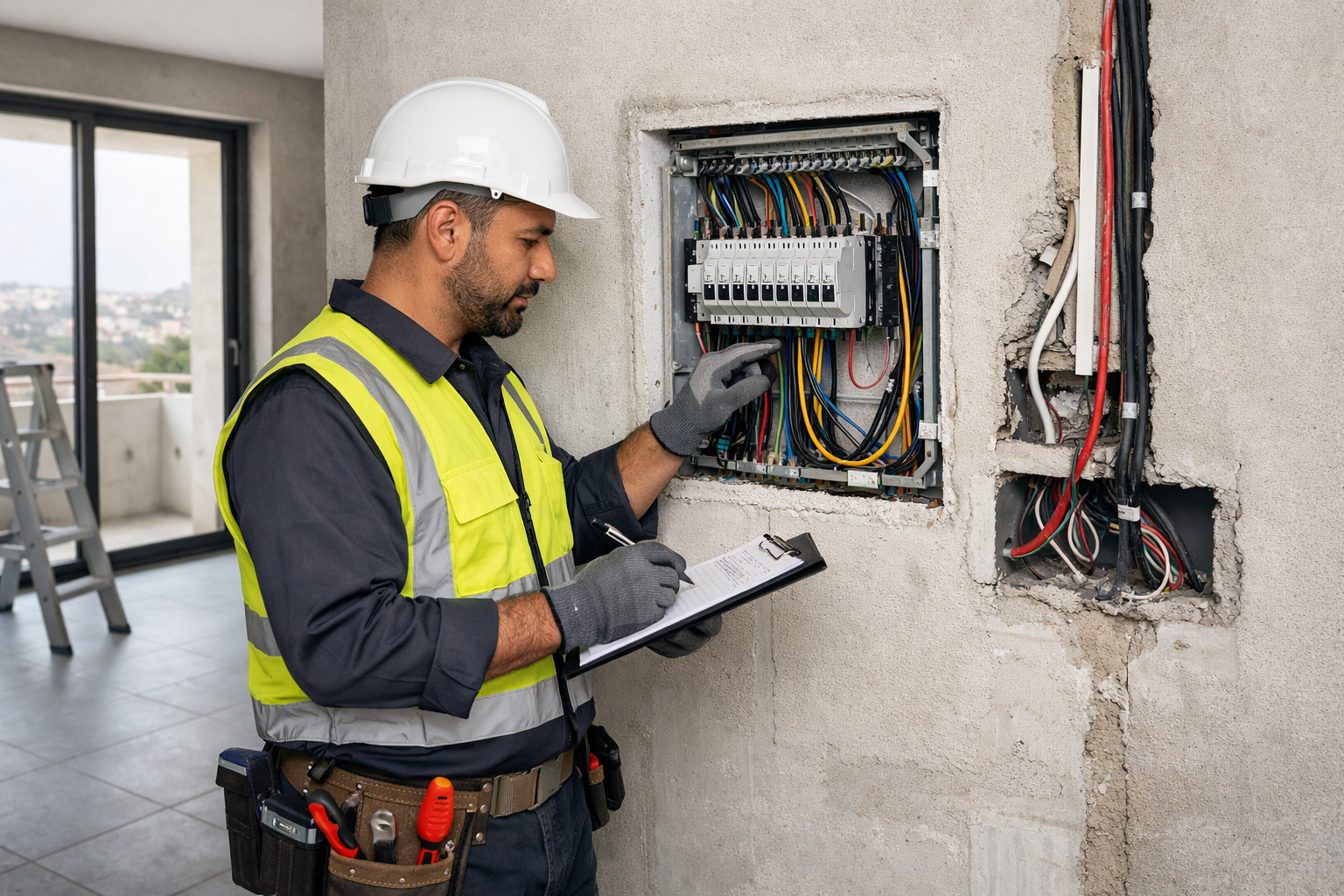 إذا لاحظت أسلاكًا مكشوفة، أو علبًا غير ثابتة، أو تداخلًا مع أعمال السباكة، أو اختلافًا بين المخطط والتنفيذ، فمن الأفضل التوقف والمراجعة قبل الانتقال إلى مرحلة التشطيب النهائي.