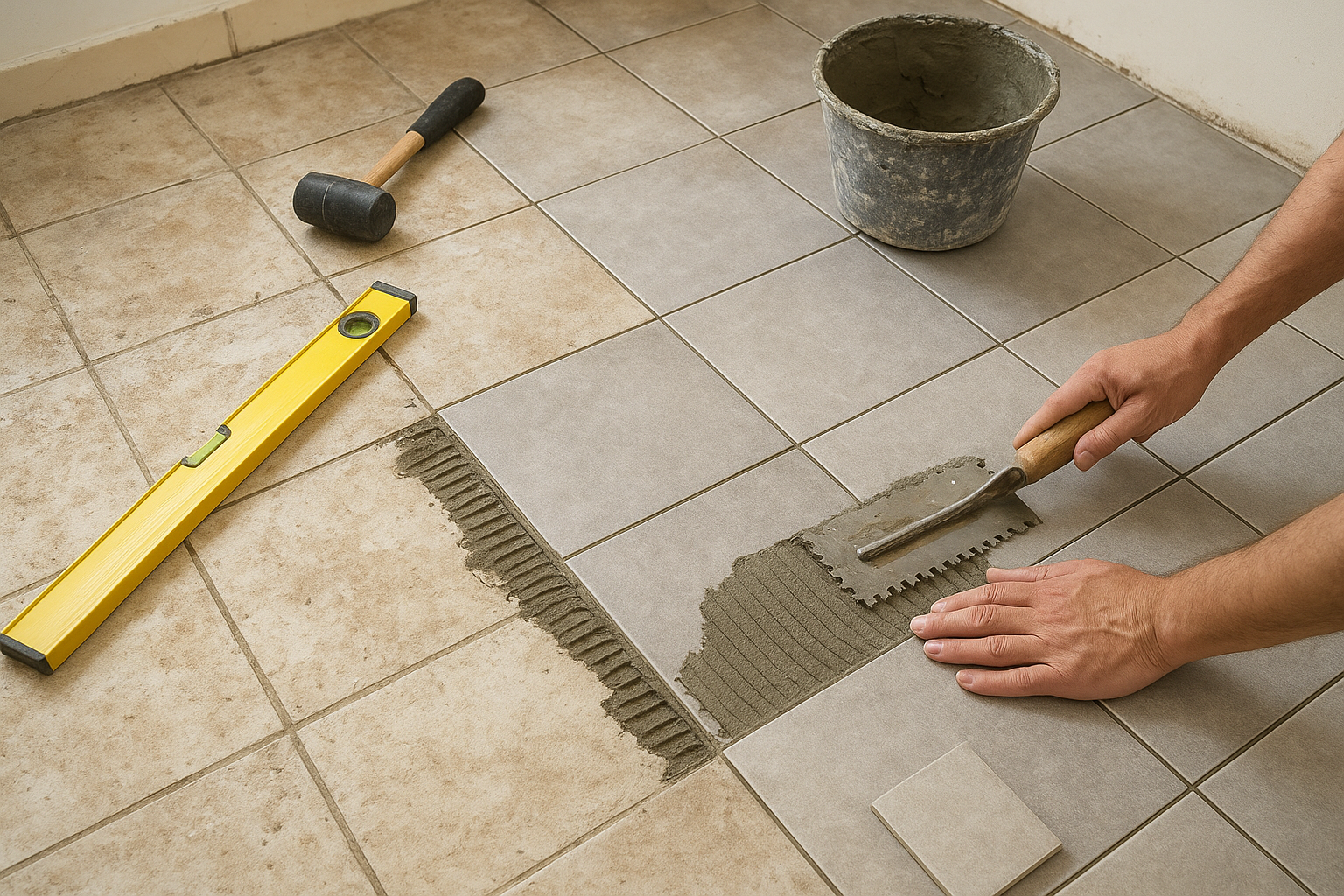 مشروع مستلمترميم وصيانة تشمل تجديد البلاط وتعديل الجدران لتوسعة غرفة، مع تنظيم متطلبات التنفيذ والمتابعة من