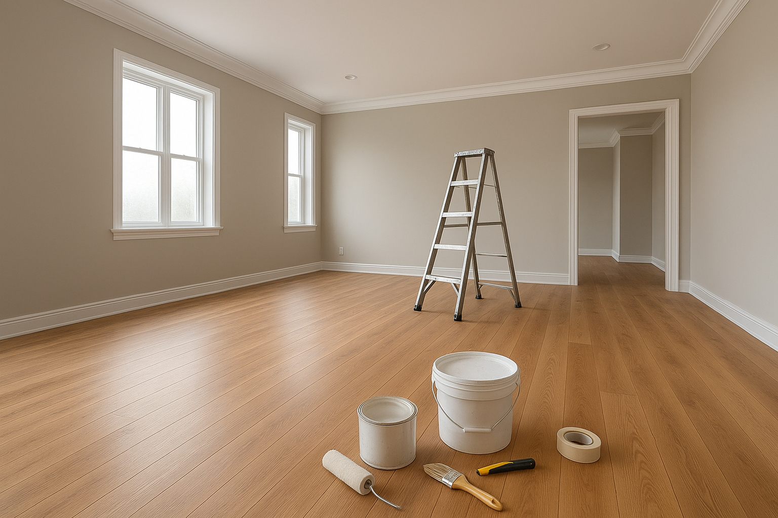 مشروع مستلمتركيب باركية ودهانات جدران وسقف لمساحة 190م² ضمن أعمال ترميم وصيانة في المنطقة الغربية، مع