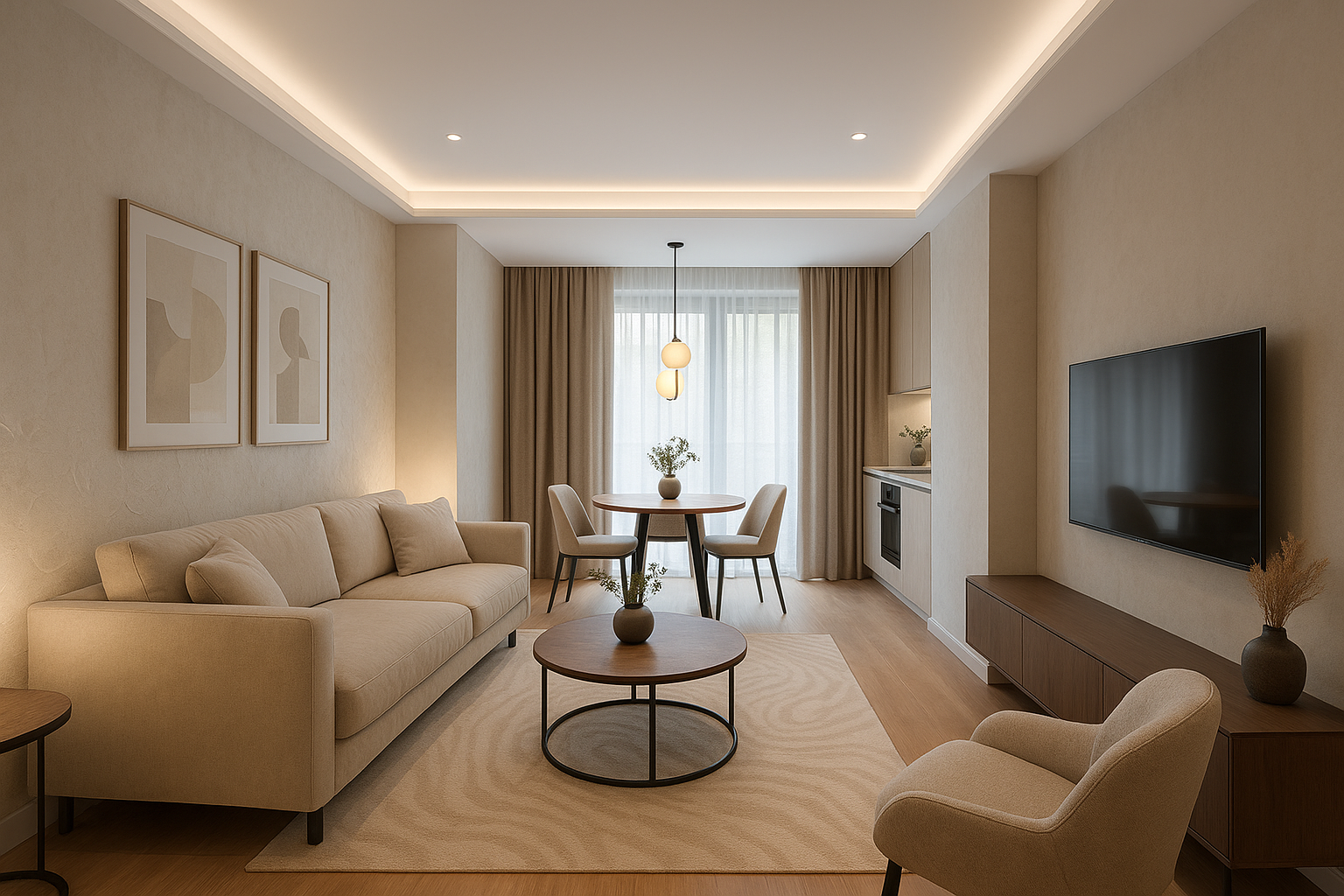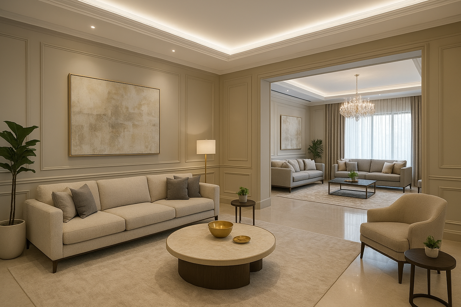 مشروع مستلممشروع ديكور شقة في الغربية يشمل تصور تصميمي وخيارات خامات وإضاءة، مع تنظيم متطلبات التنفيذ