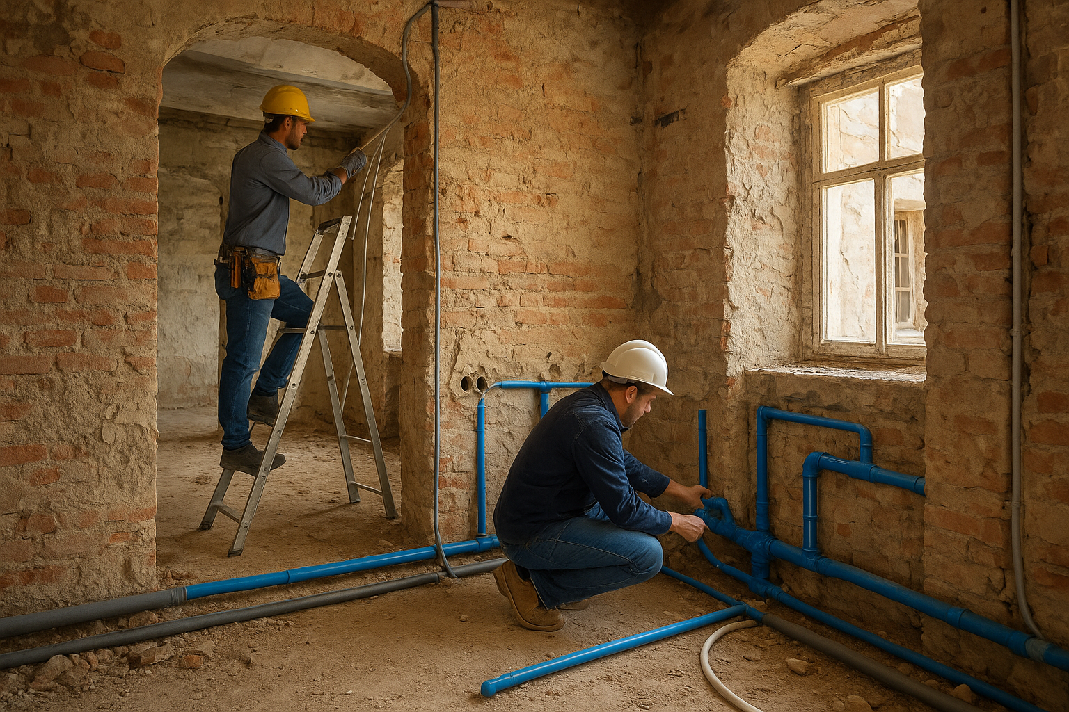 مشروع مستلمترميم منزل دورين بالوسطى يشمل السباكة والصرف والكهرباء والأبواب والدهانات، مع تنظيم المتطلبات وجدولة التنفيذ