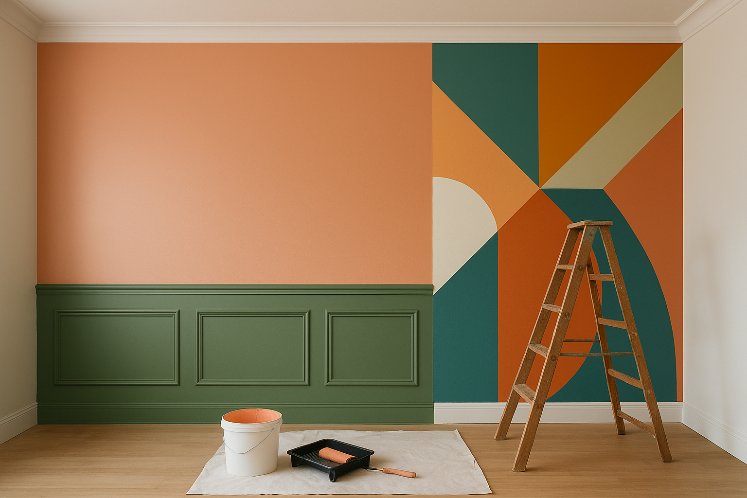 مشروع مستلممشروع ديكور جديد يشمل بويه وأعمال جدارية.