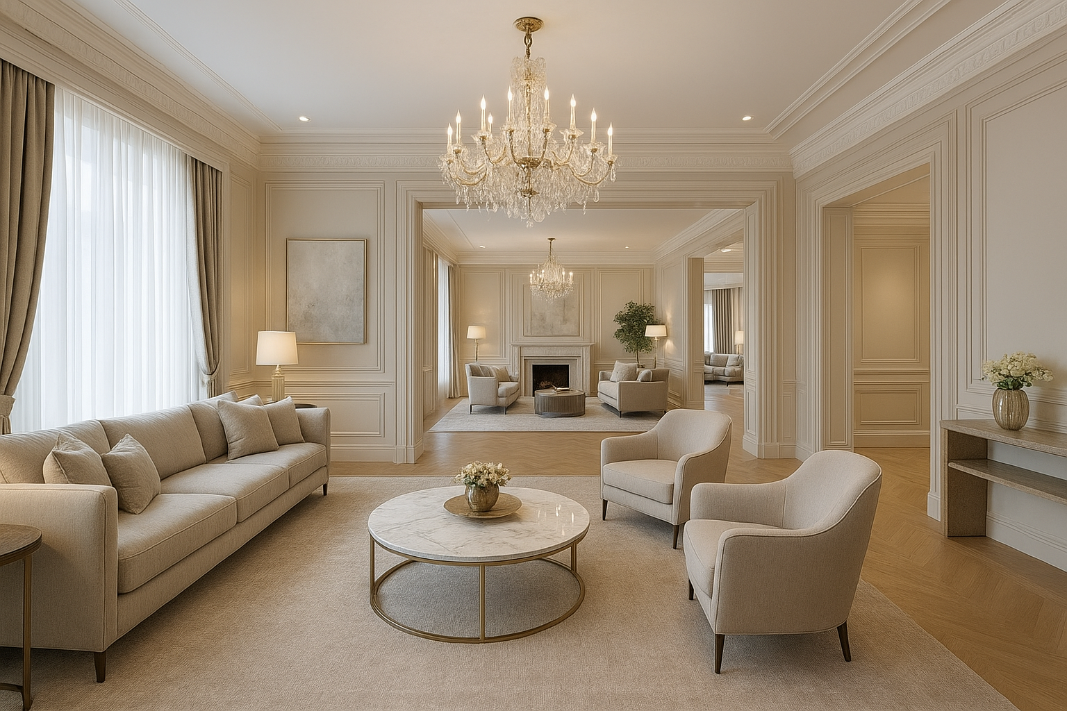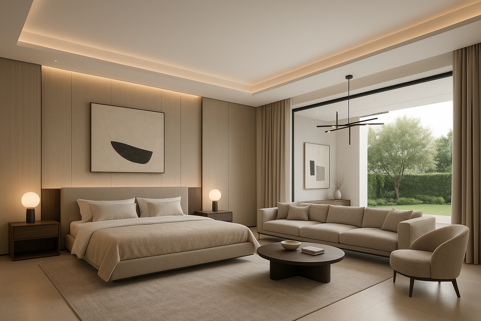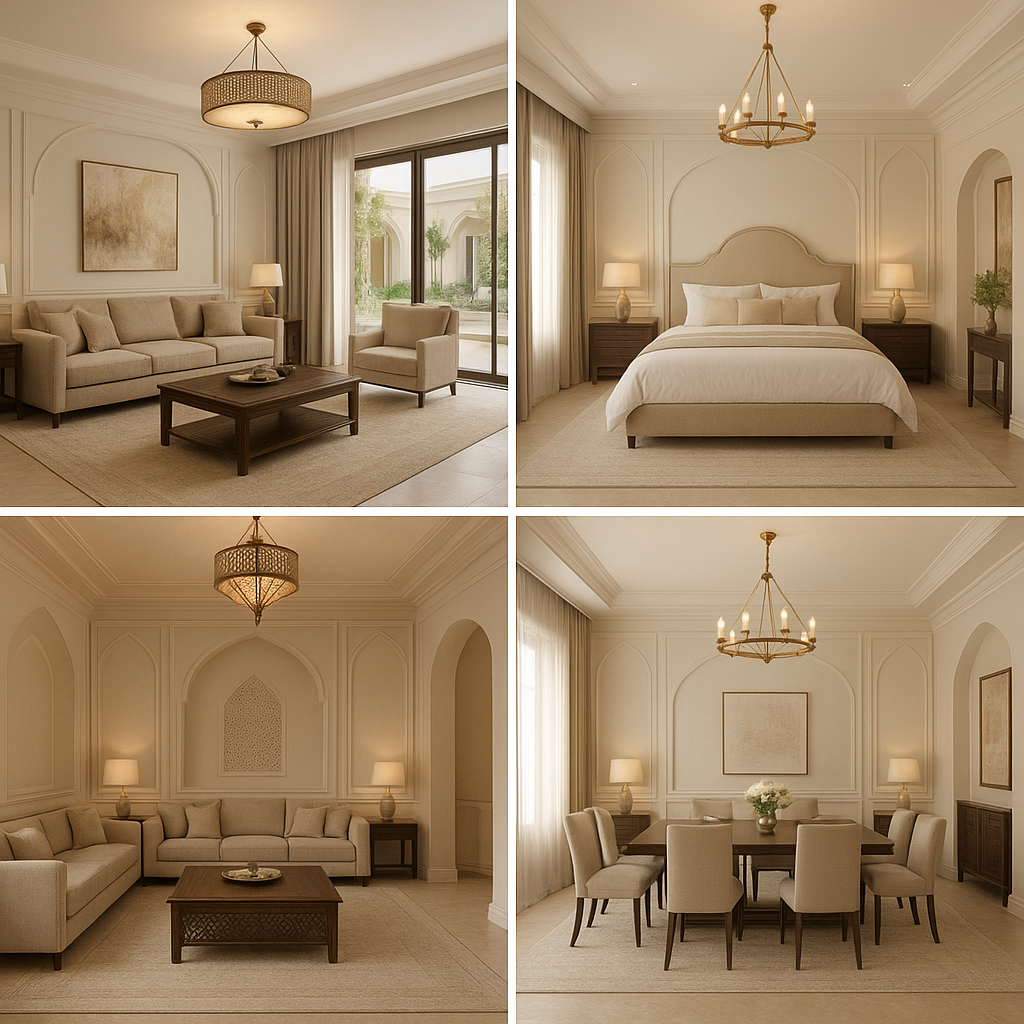 مشروع مستلممشروع ديكور متكامل يشمل صالة وغرف نوم ومجلس.