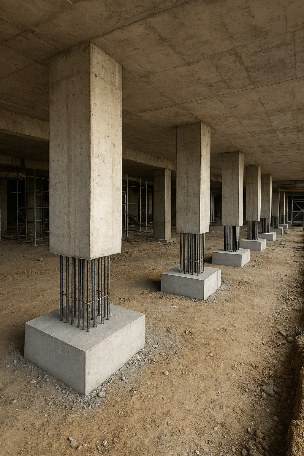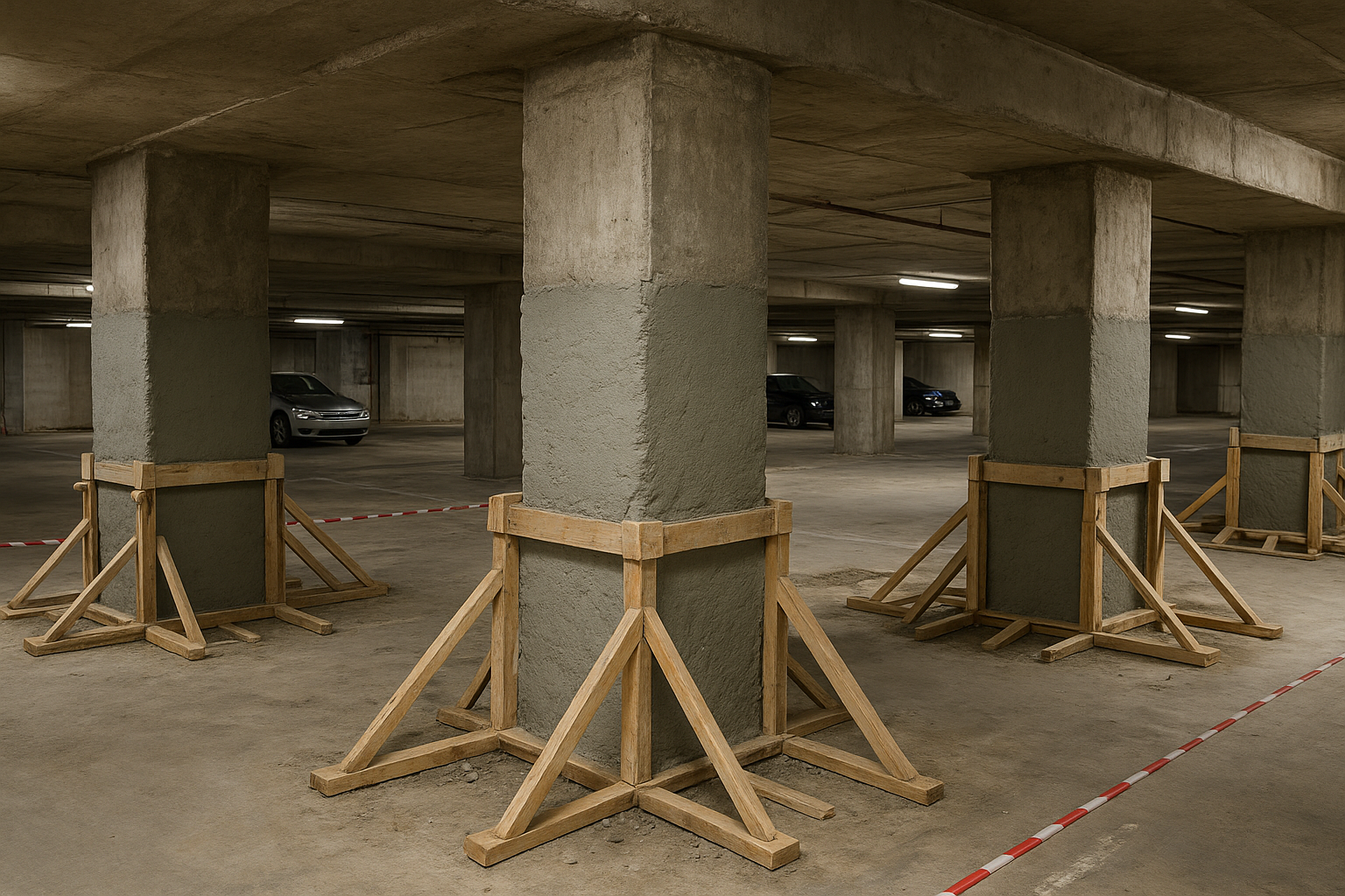 مشروع مستلمترميم وصيانة أعمدة بدروم مواقف سيارات مع تحديد دعامات الأساس المطلوبة وتنظيم التنفيذ والمتابعة لضمان