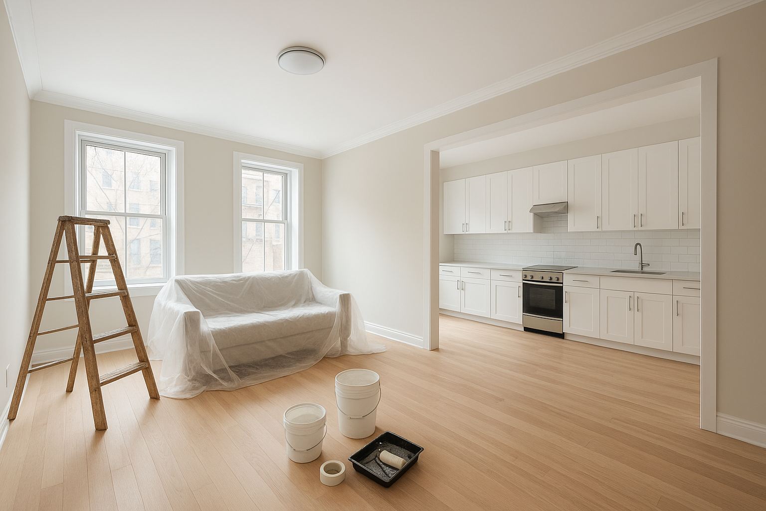 مشروع مستلمتشطيب شقة تشمل بوية جدران ودهان أبواب وديكورات.