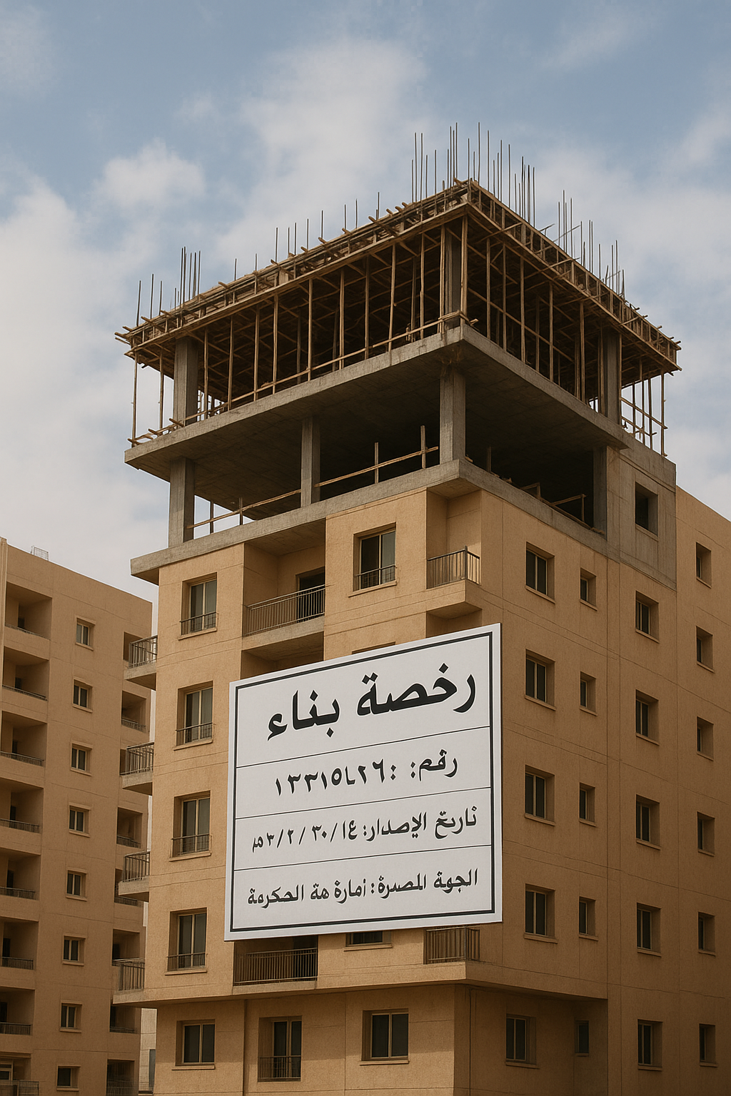 مشروع مستلمتنظيم إضافة شقة ملحق ضمن رخصة البناء في مكة، مع مراجعة المتطلبات وتنسيق الاعتماد وترتيب