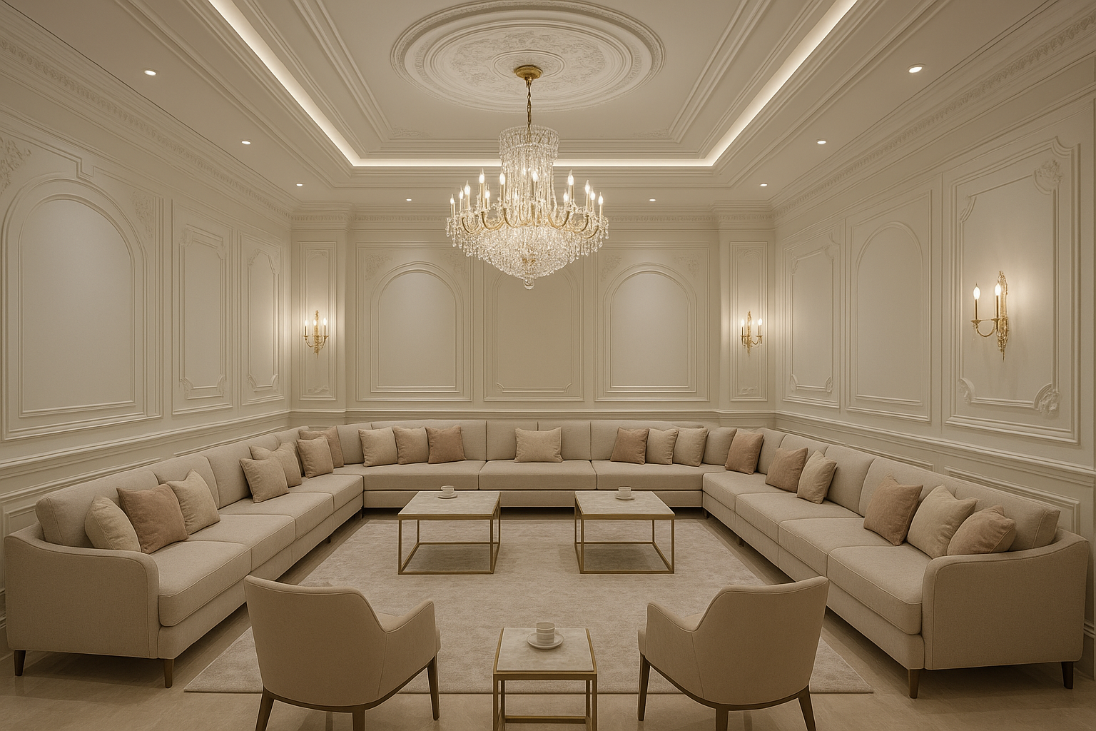 مشروع مستلمتشطيب مجلس في المنطقة الوسطى بالسعودية مع تنظيم المتطلبات ومتابعة التنفيذ لضمان جودة التشطيبات وتناسق