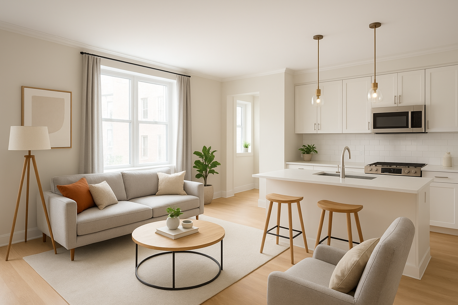 مشروع مستلمتصميم مطبخ أمريكي أنيق يتناسب مع غرفة المعيشة.