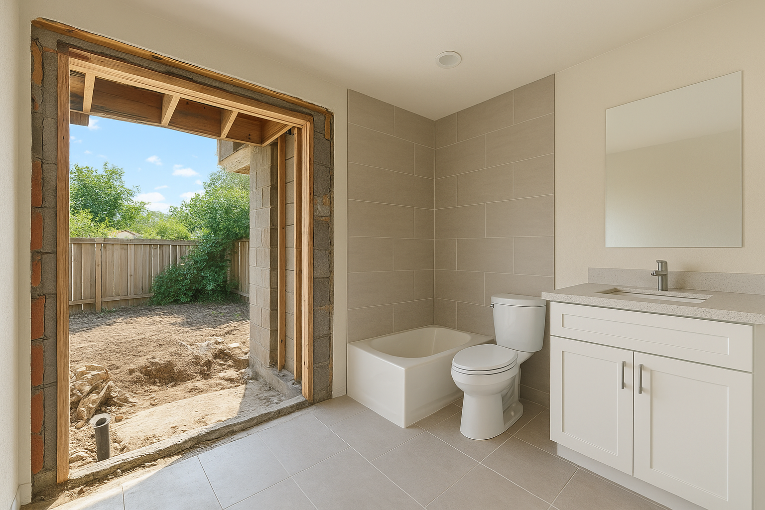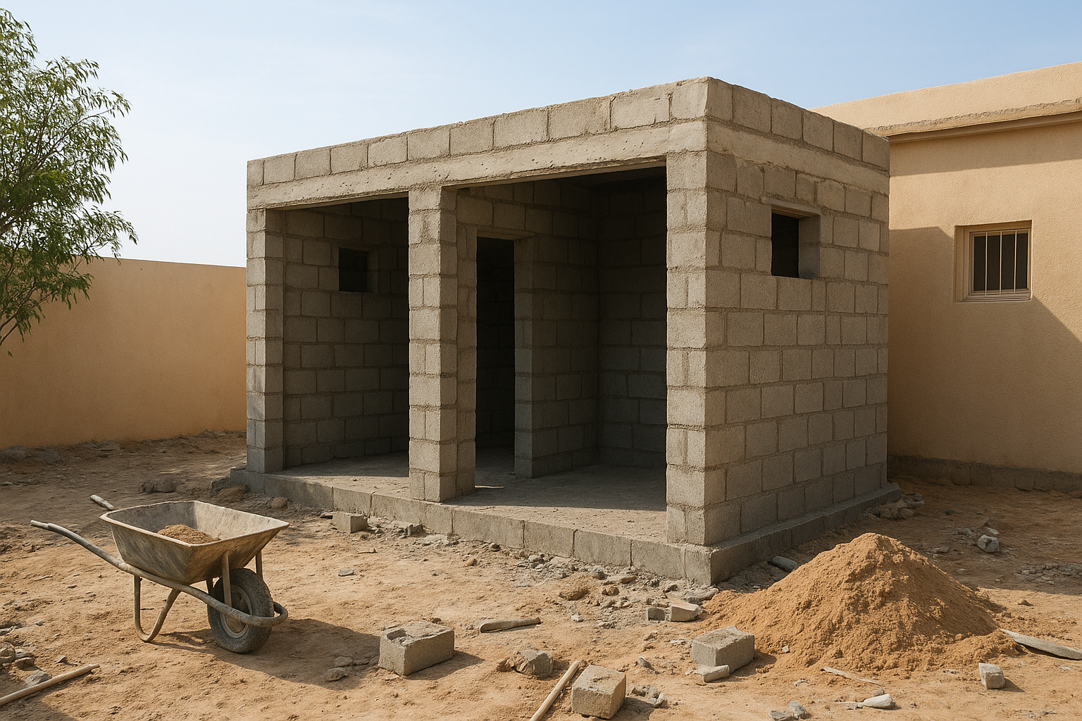 مشروع مستلممشروع بناء جديد يتضمن إضافة غرف وحمامات في السعودية.