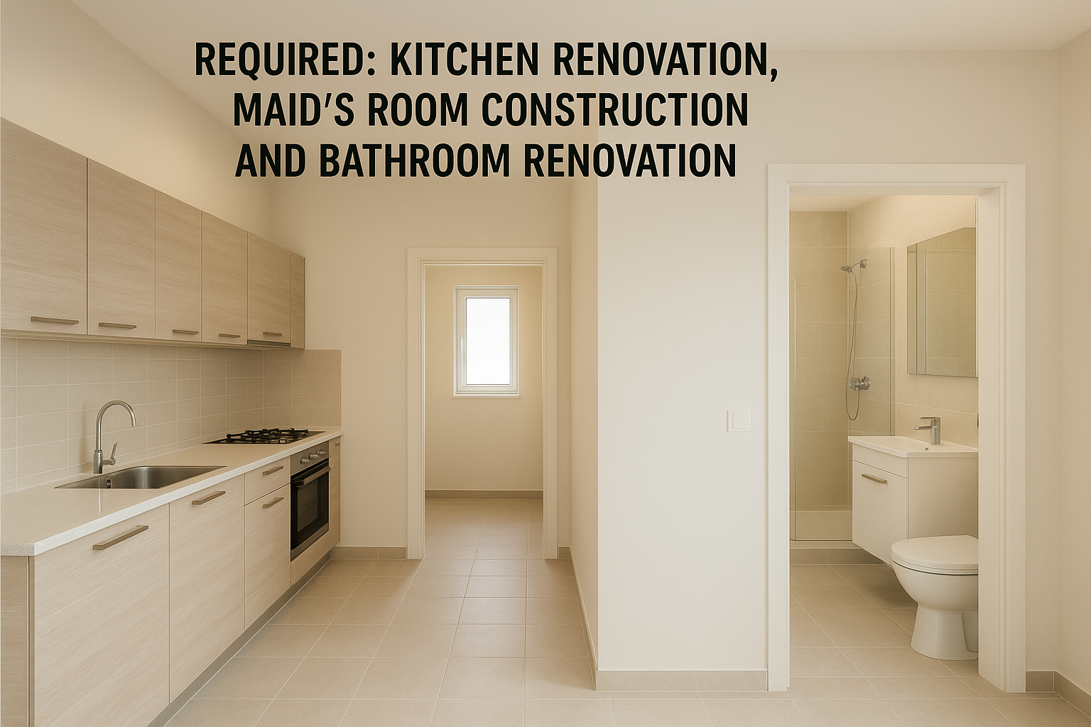 مشروع مستلمترميم وصيانة شقة مع زيادة حمام وتنفيذ سقف لمنور.