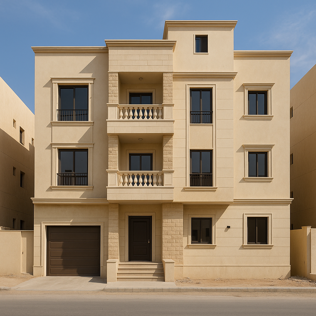 تشطيب عمارة بمساحة 400 متر في الغربية، أربع شقق وملحق.