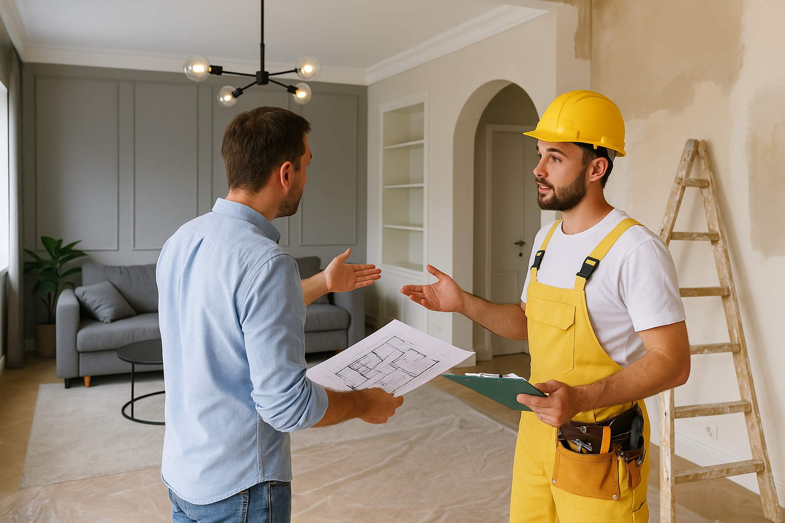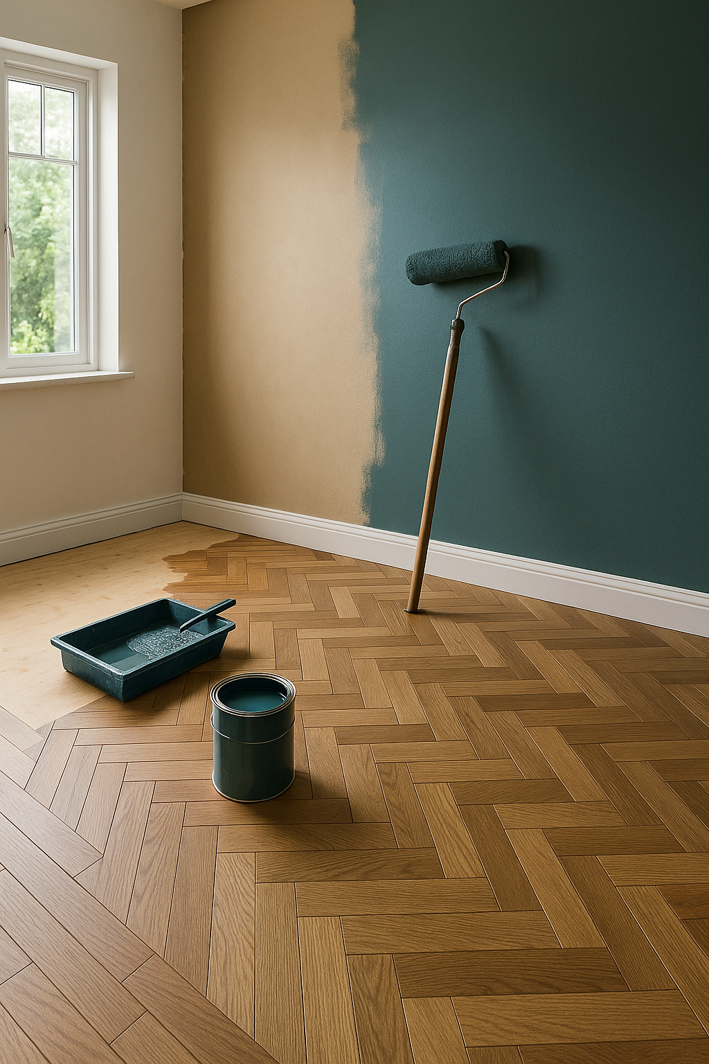 مشروع مستلممشروع ديكور شامل في الوسطى، يتضمن بويه وفتح شباك.