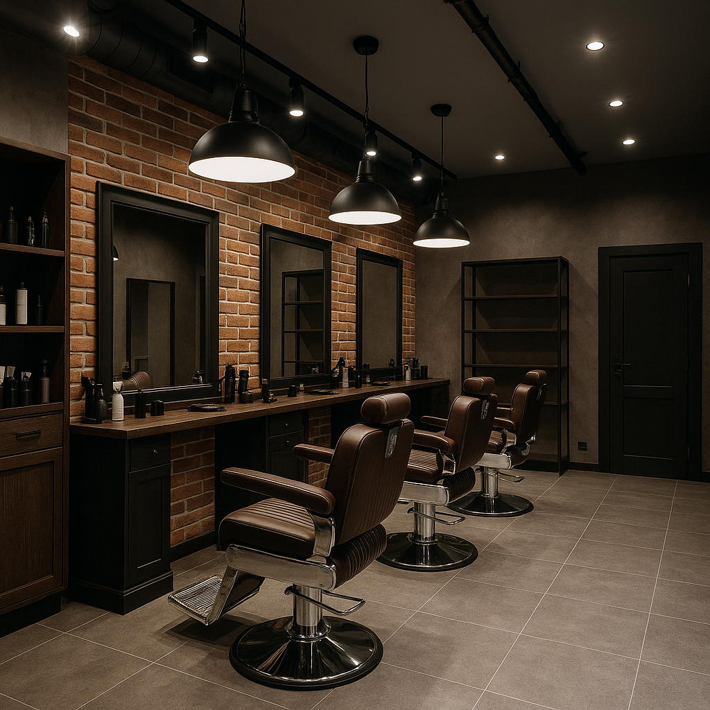 مشروع مستلمتصميم مميز لمحل حلاقة رجالية في الوسطى.