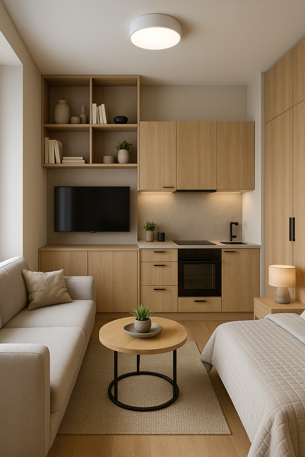مشروع مستلمتحويل شقة صغيرة في المنطقة الوسطى بتصميم مفتوح.