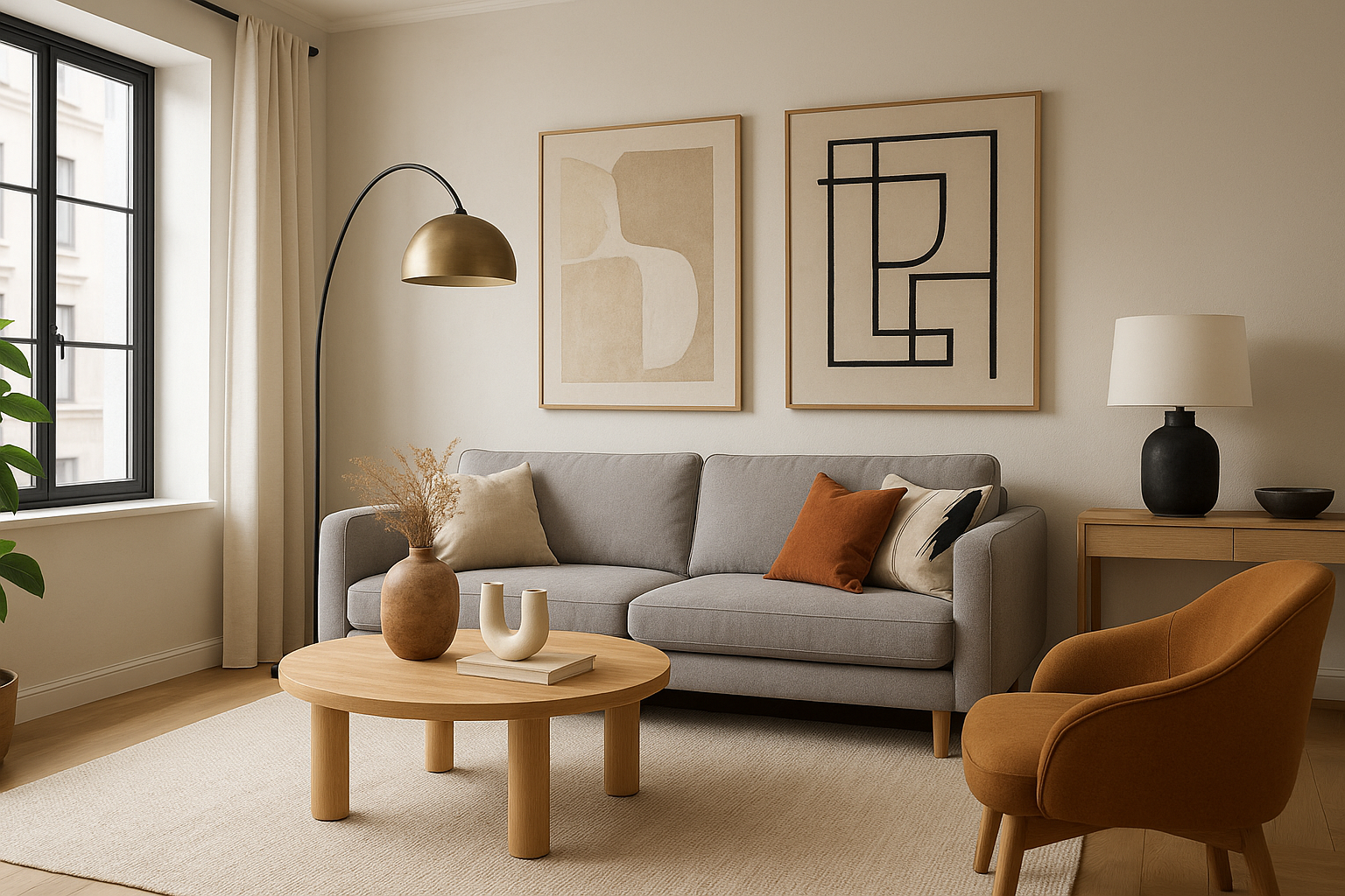مشروع مستلممشروع ديكور لصالة وغرفتين في المنطقة الوسطى.