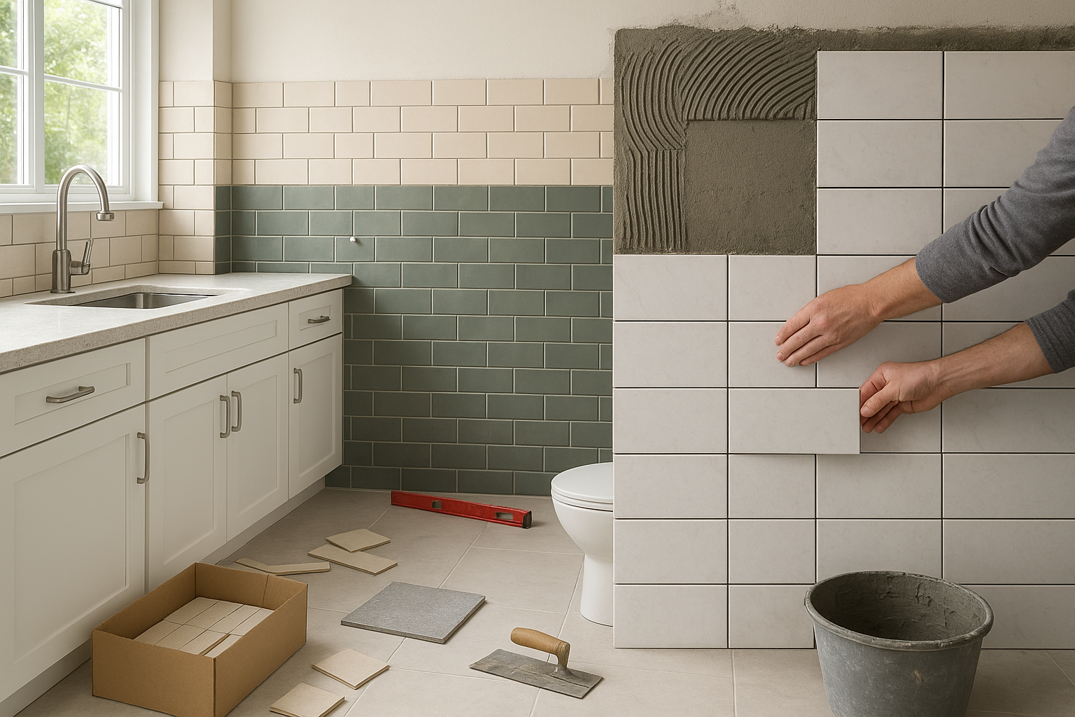 مشروع مستلمتجديد حمامات ومداخل في مشروع تشطيب مميز.