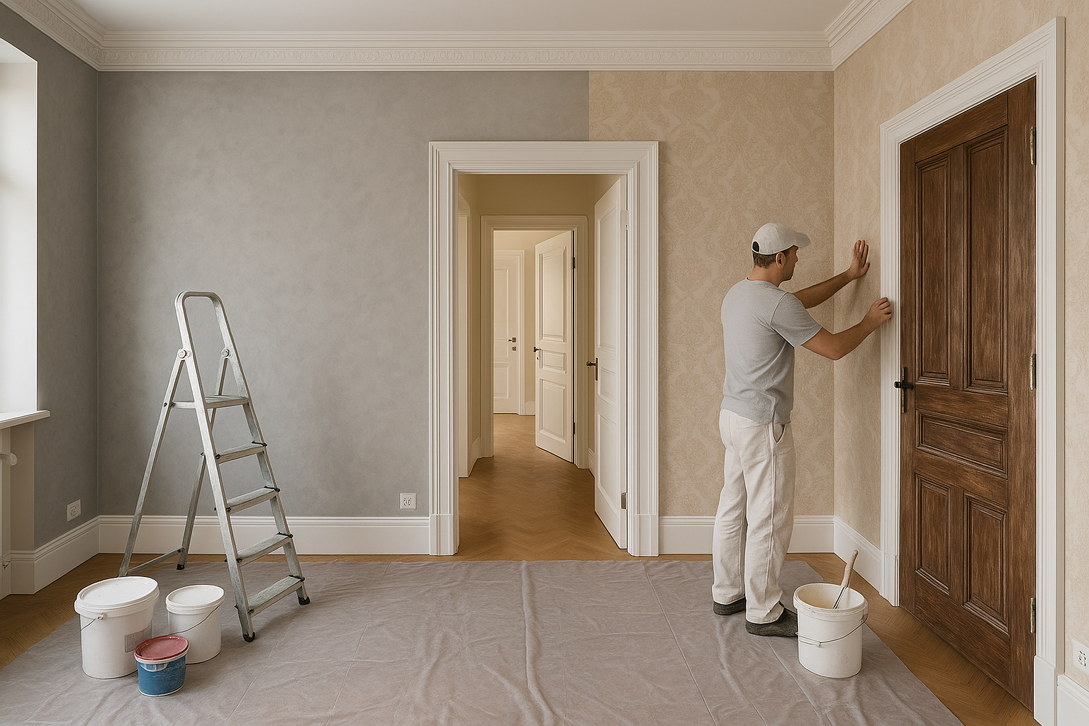 مشروع مستلممشروع تشطيب شامل يتضمن دهانات وديكورات وتغيير أبواب.