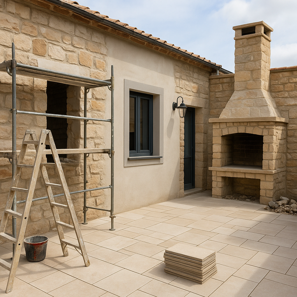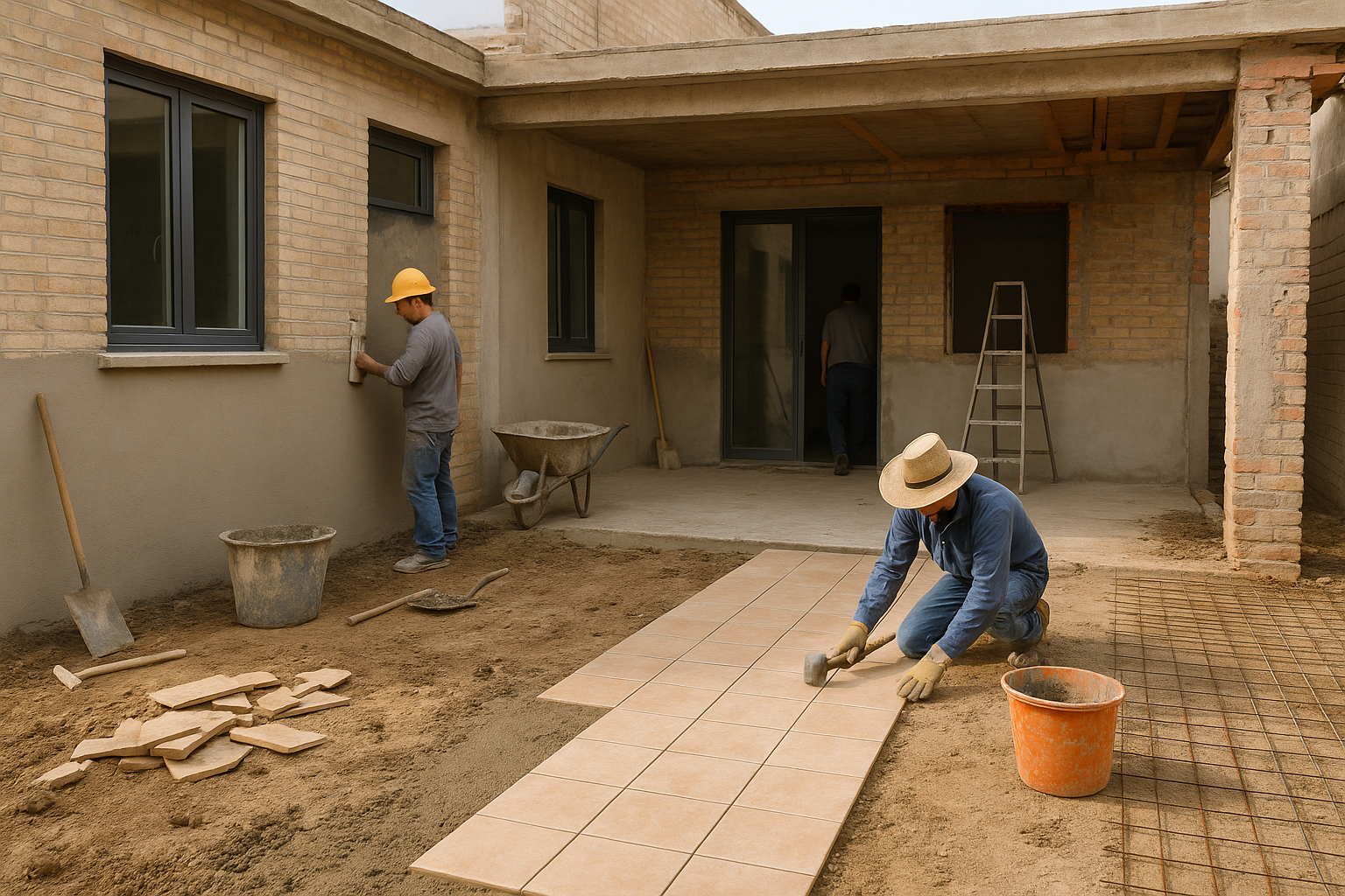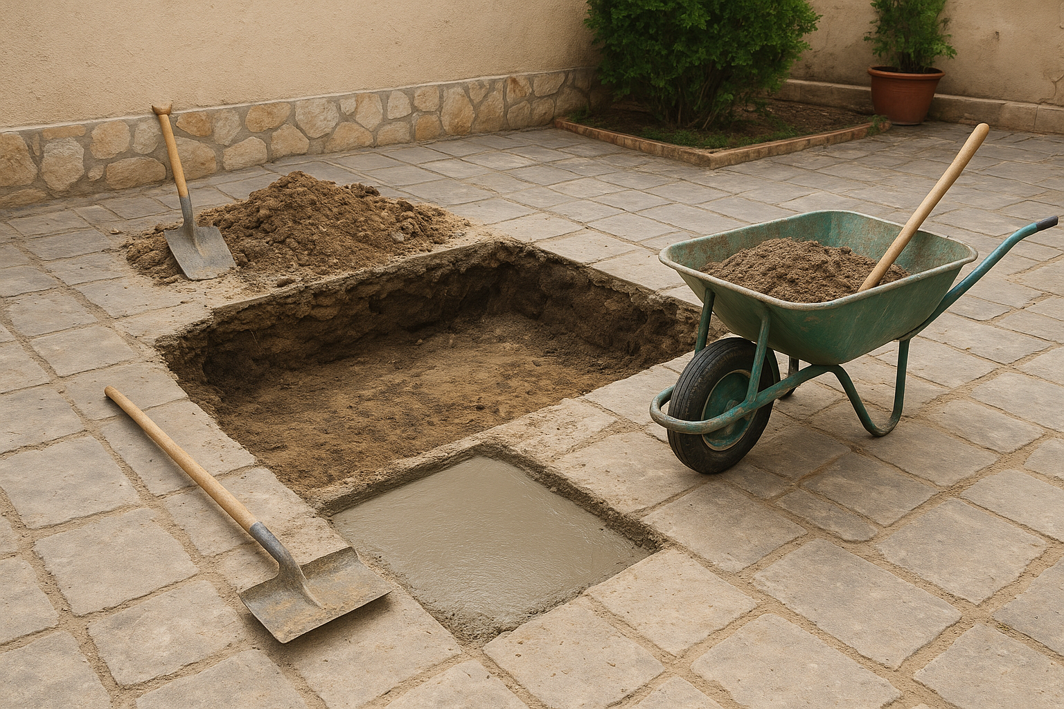 مشروع مستلمترميم فناء المنزل بإزالة البلاط وتجديده.