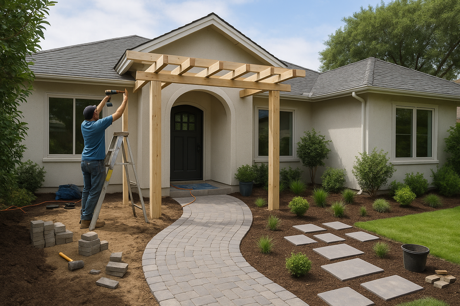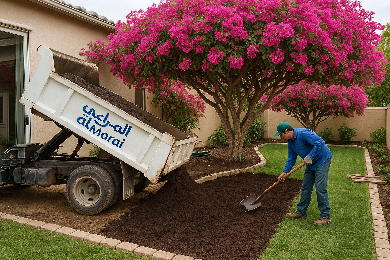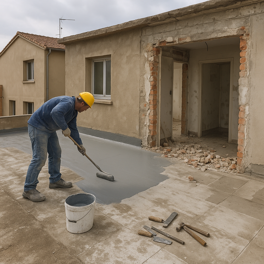 مشروع مستلمترميم فناء المنزل بإزالة البلاط وتجديده.