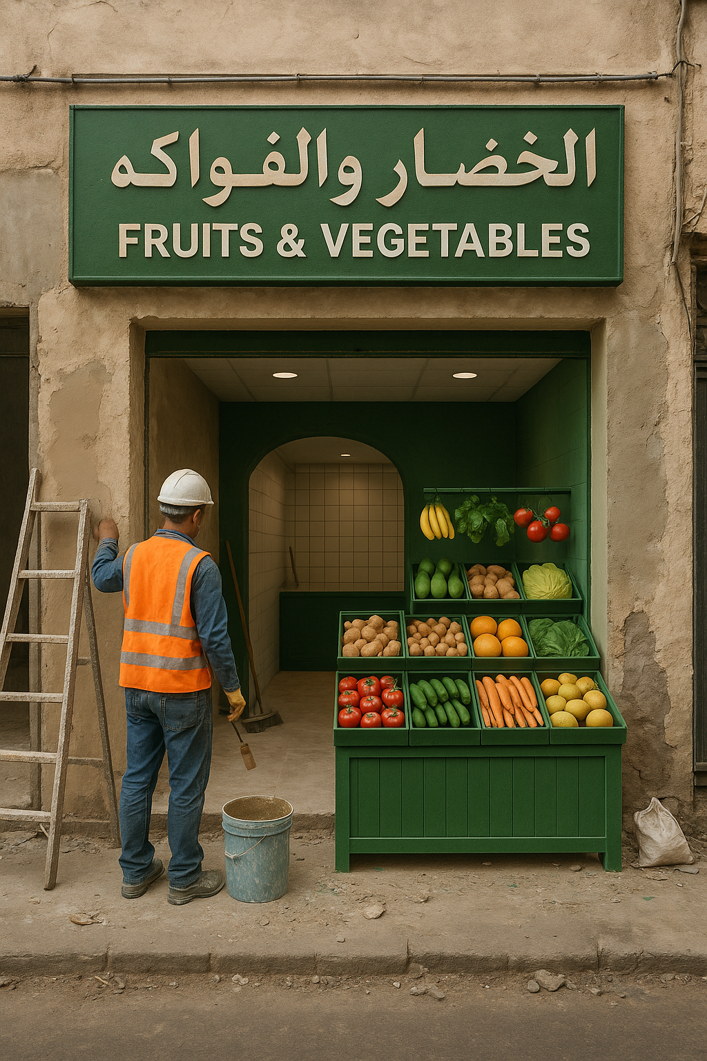 مشروع مستلمترميم وصيانة محل خضار وفواكه في الرياض بشكل احترافي.