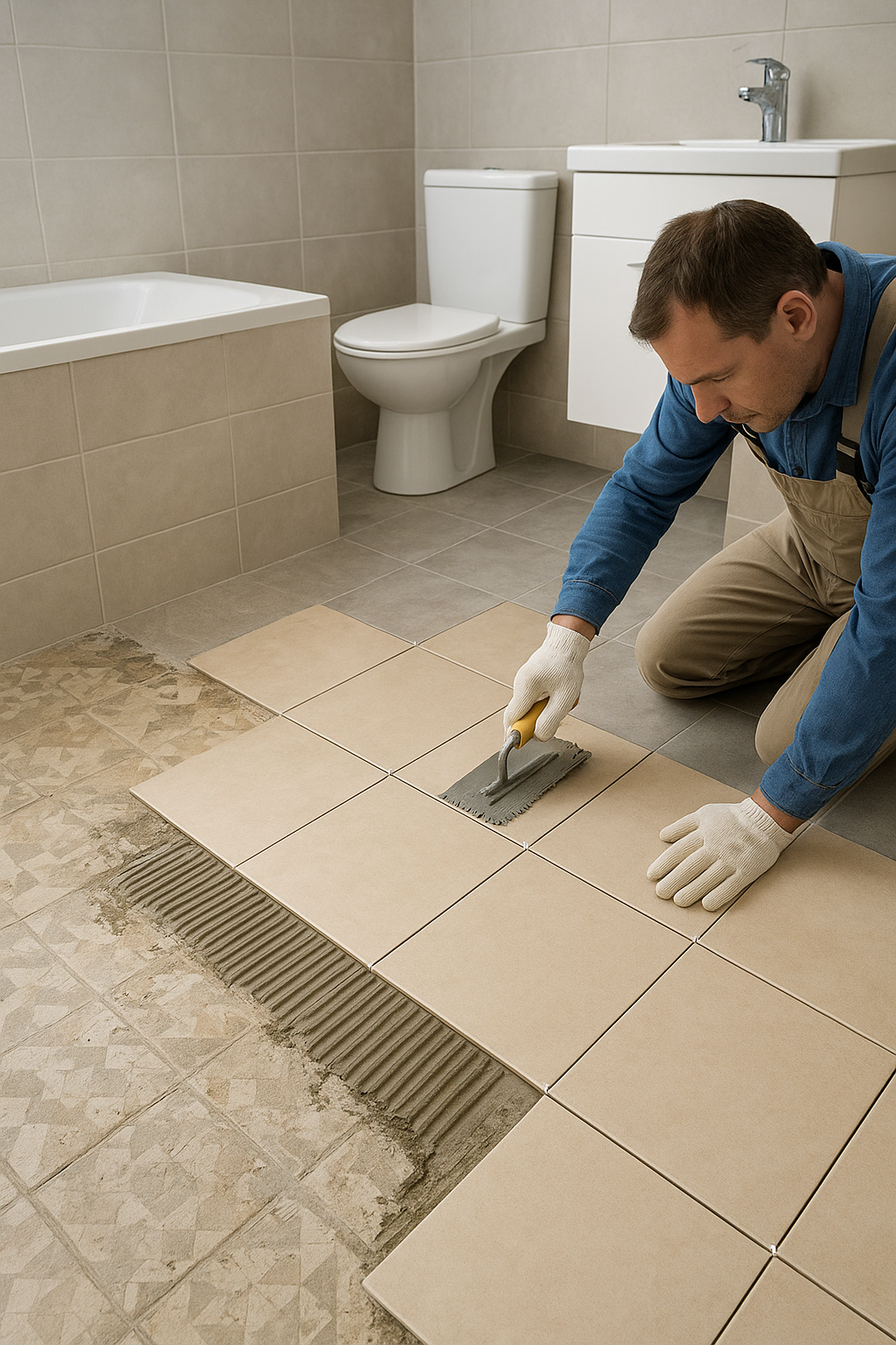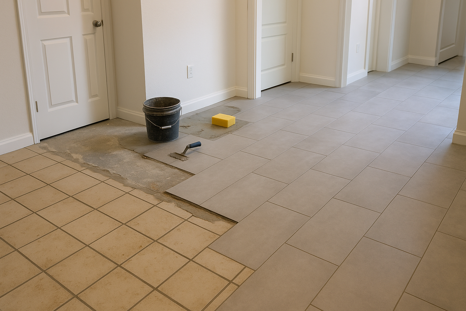 مشروع مستلمتغيير بلاط المنزل من الداخل لتحسين المظهر العام.
