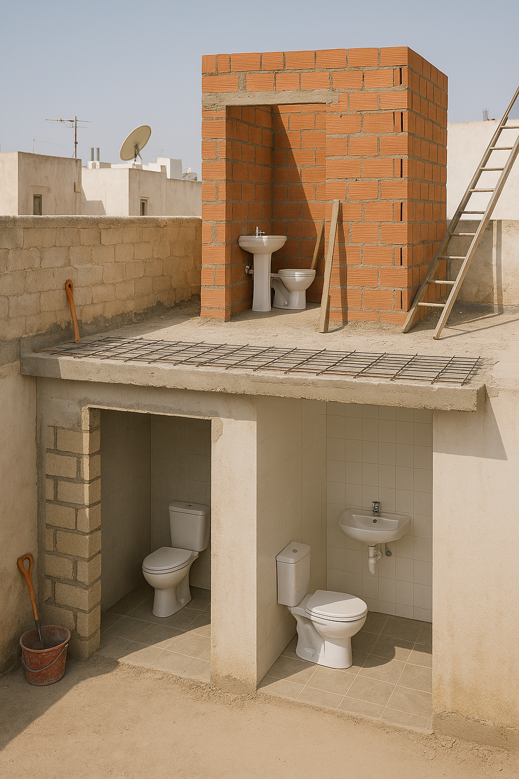 مشروع مستلمترميم وصيانة دورات مياه وبناء غرفة جديدة في السطح.