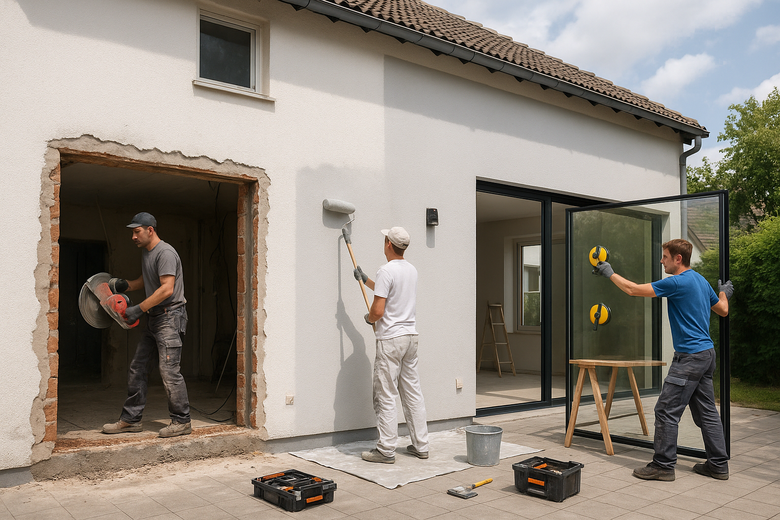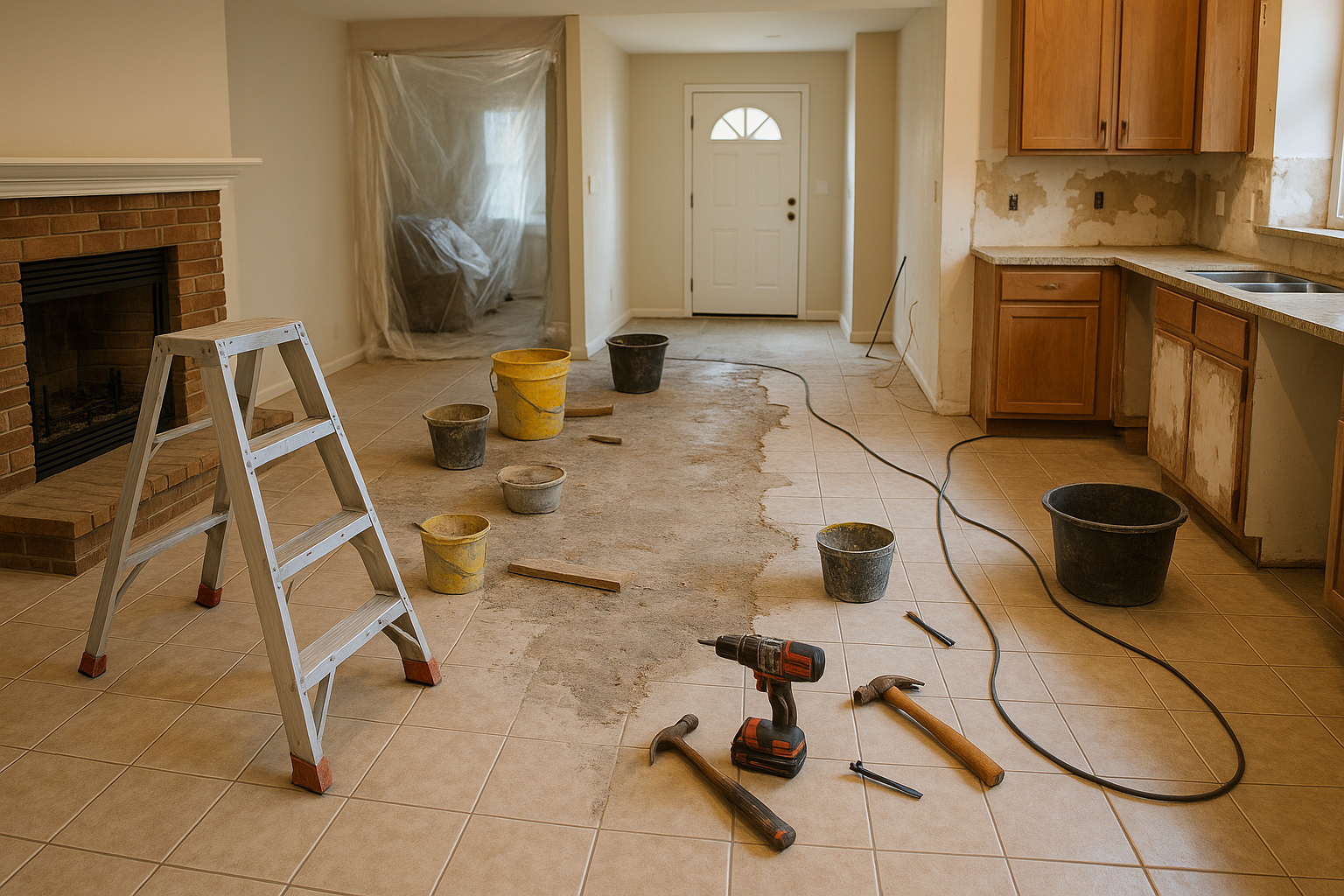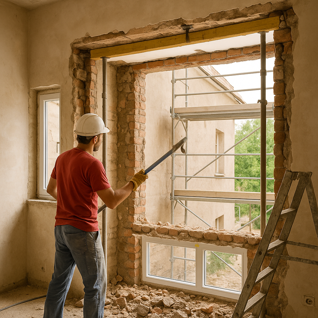 مشروع مستلمترميم وصيانة فلة تشمل قص جدران وبويه وزجاج.