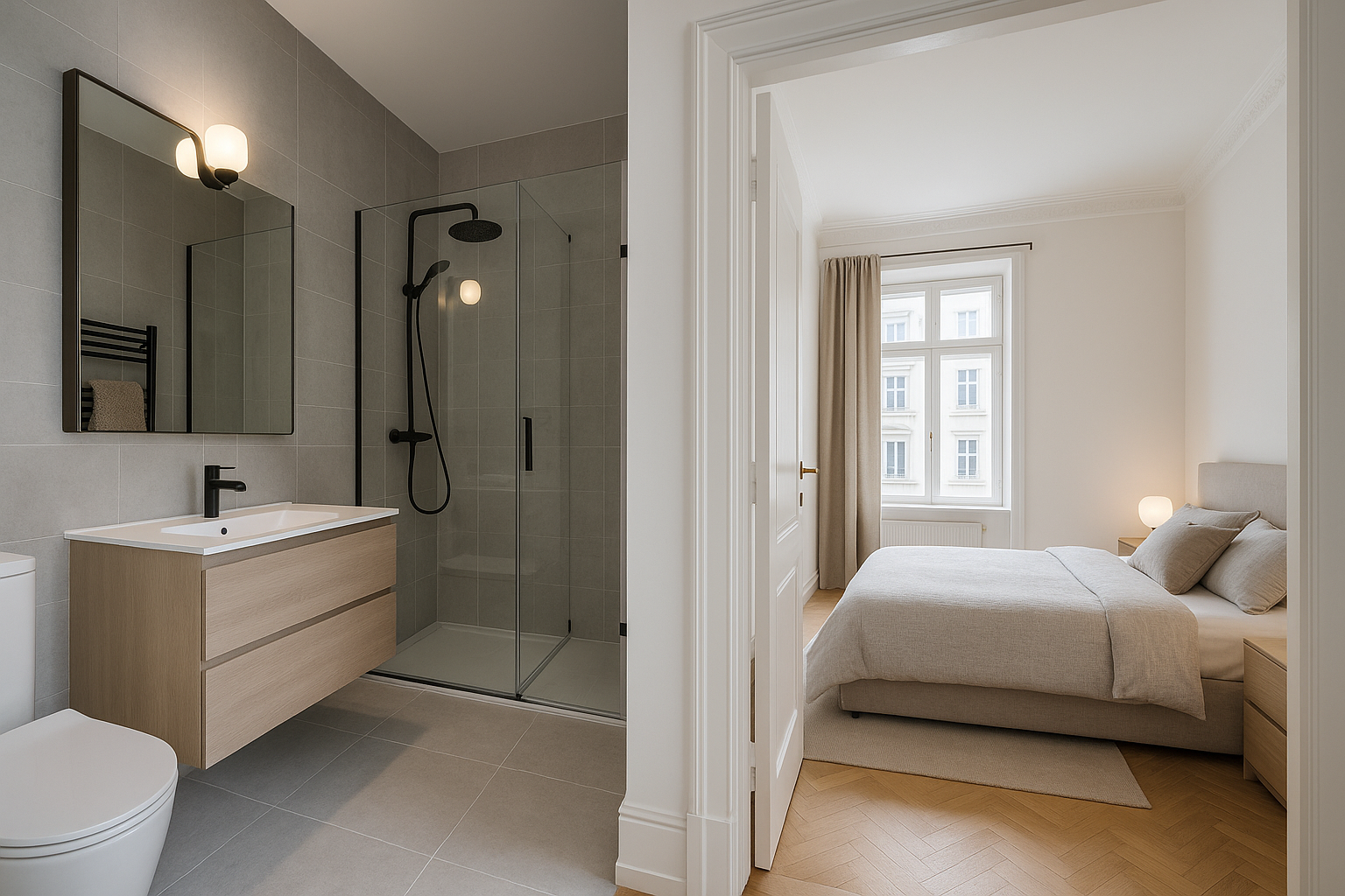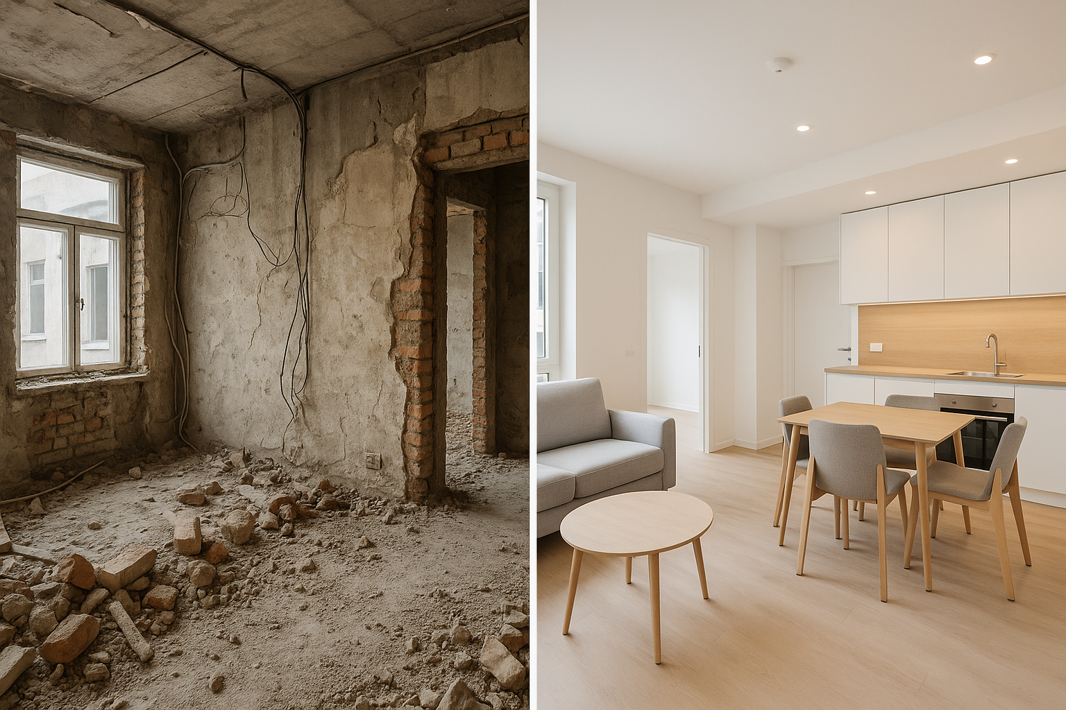 مشروع مستلمترميم شامل لشقة في الوسطى مع تحسينات للحمامات والبلكونات.