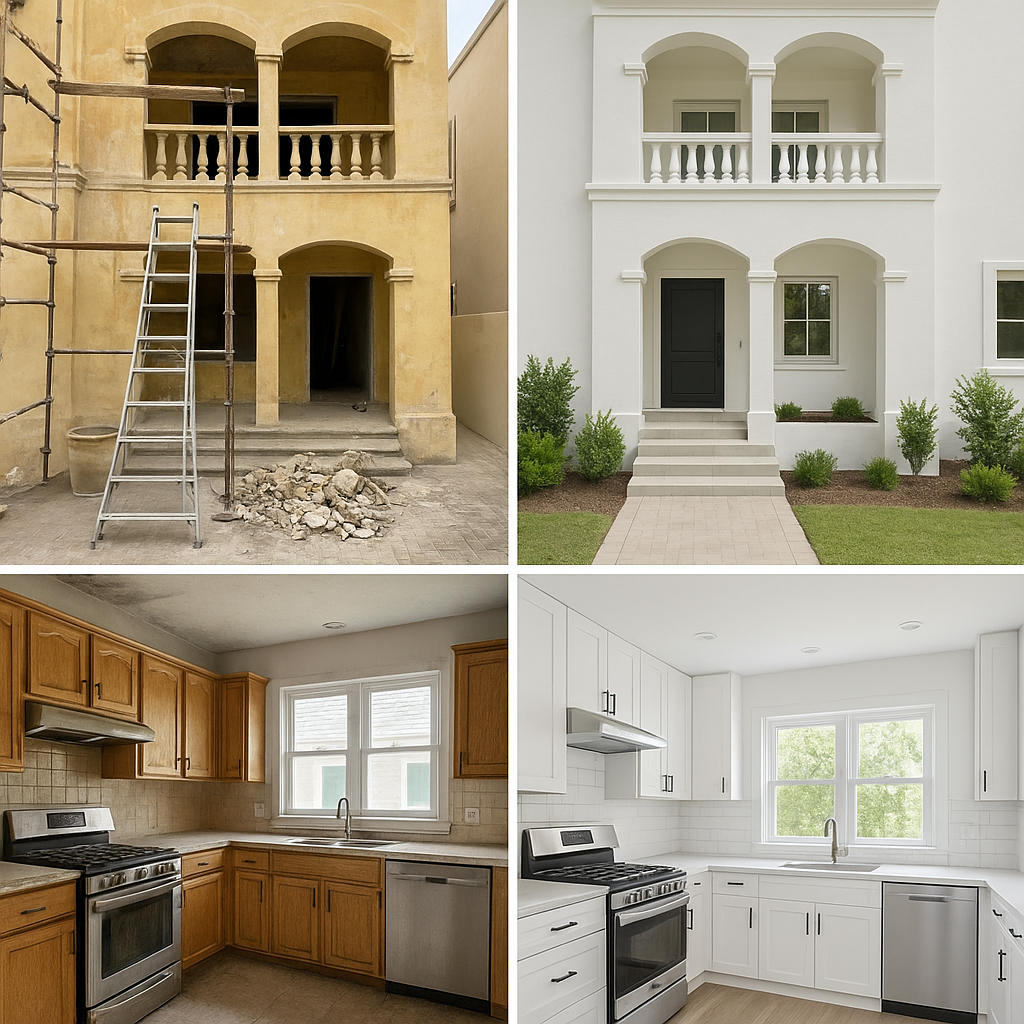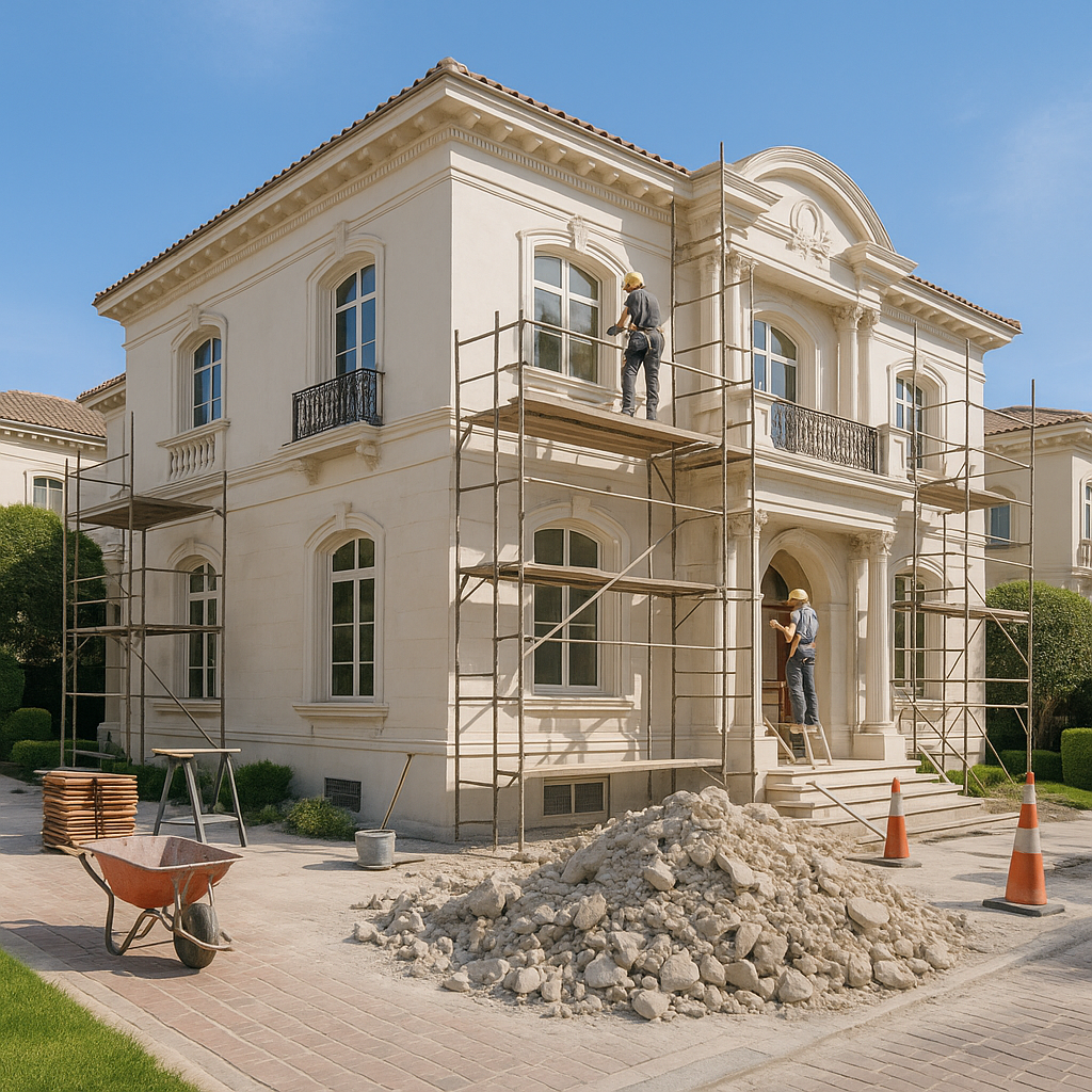 مشروع مستلمترميم واجهة الفيلا والمطبخ في المنطقة الوسطى.