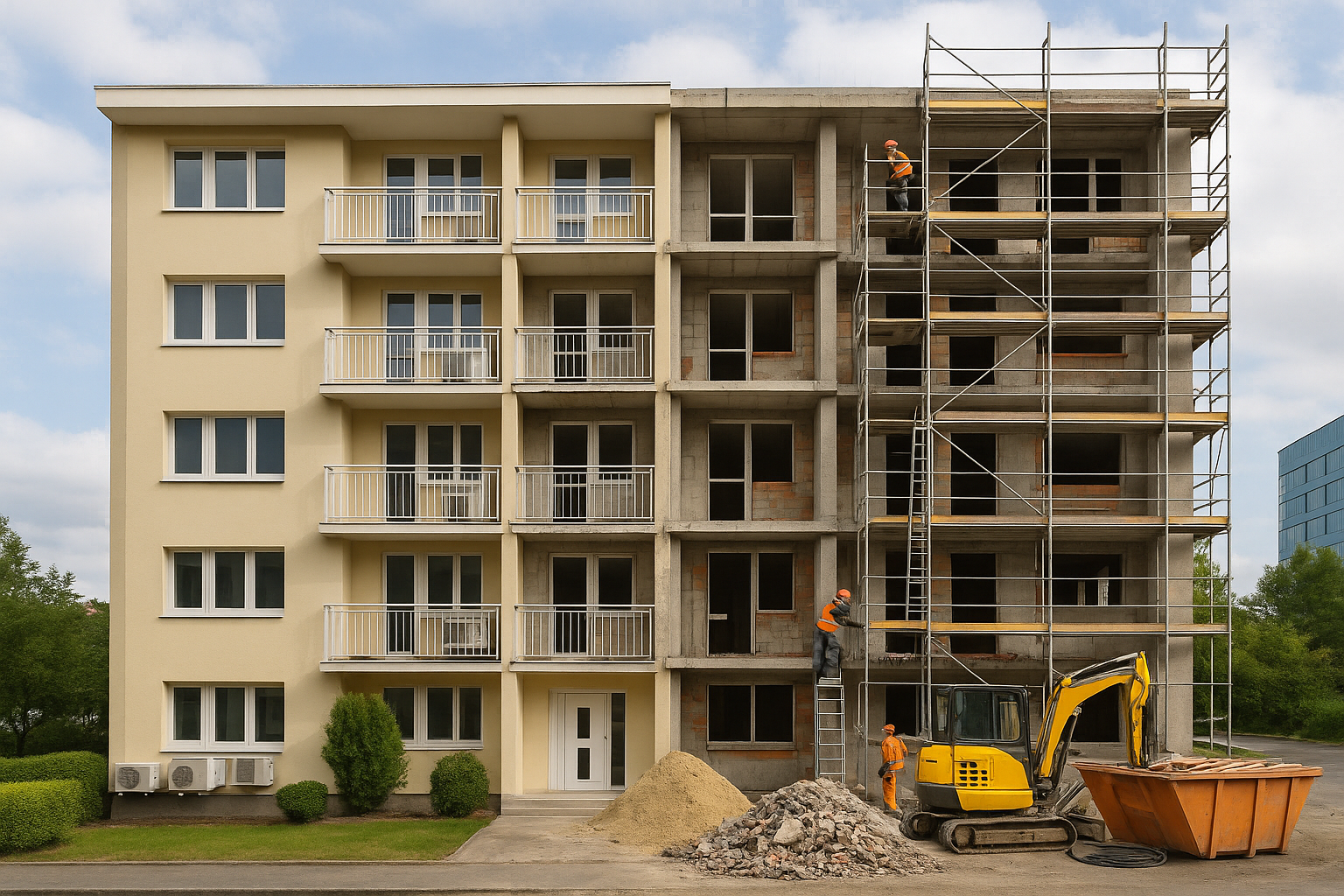 مشروع مستلمترميم واجهة حديثة على شارعين في المنطقة الوسطى.