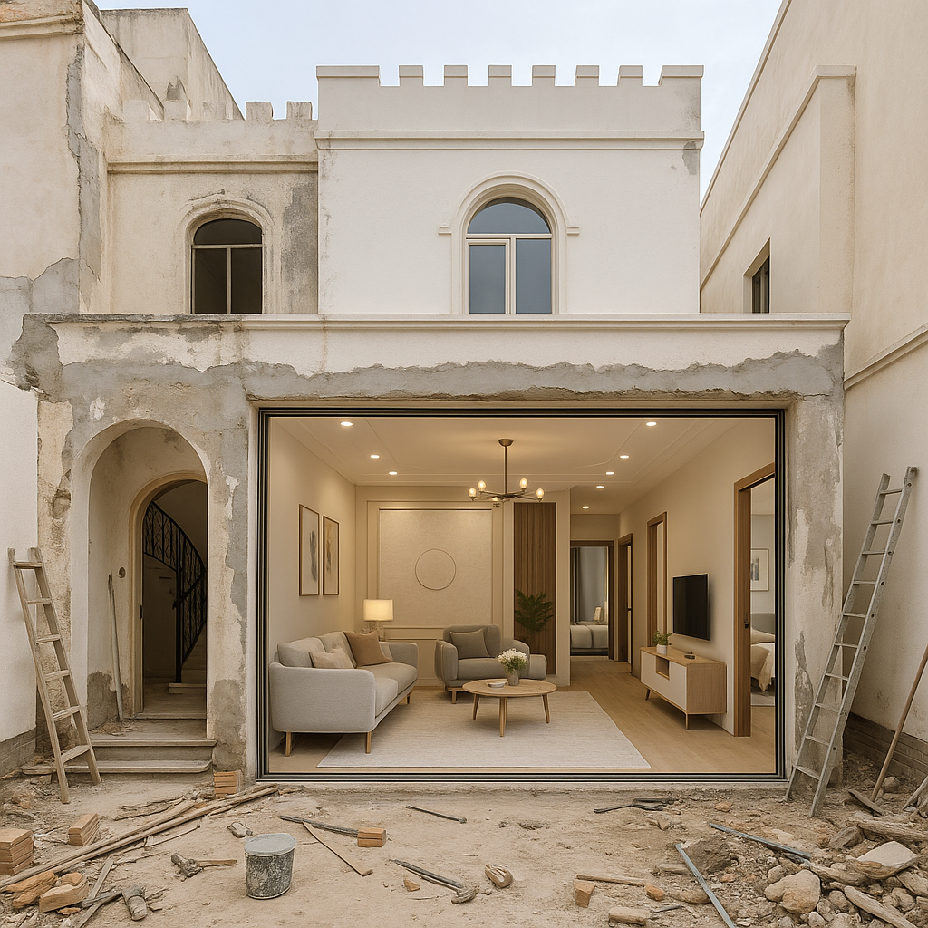 مشروع مستلمتحويل فيلا قديمة إلى تصميم مودرن مع لمسات جمالية.