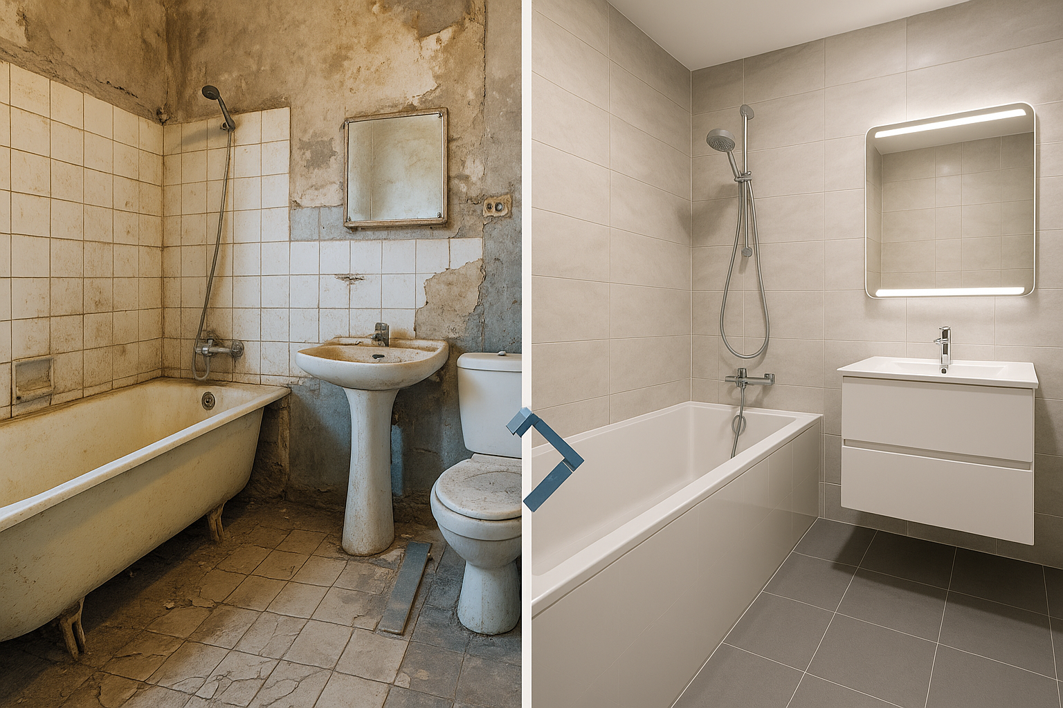 مشروع مستلمترميم وصيانة شامل للحمام مع تغيير السباكة والكهرباء.