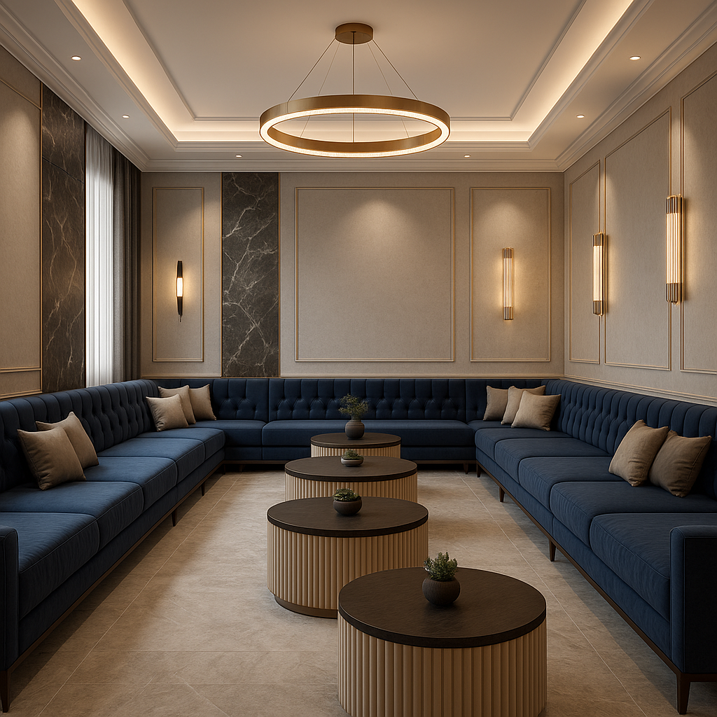 تصميم وتنفيذ ديكور مجالس كنب بالشرقية مع تنظيم المتطلبات، اختيار الخامات، ومتابعة التنفيذ حتى تسليم