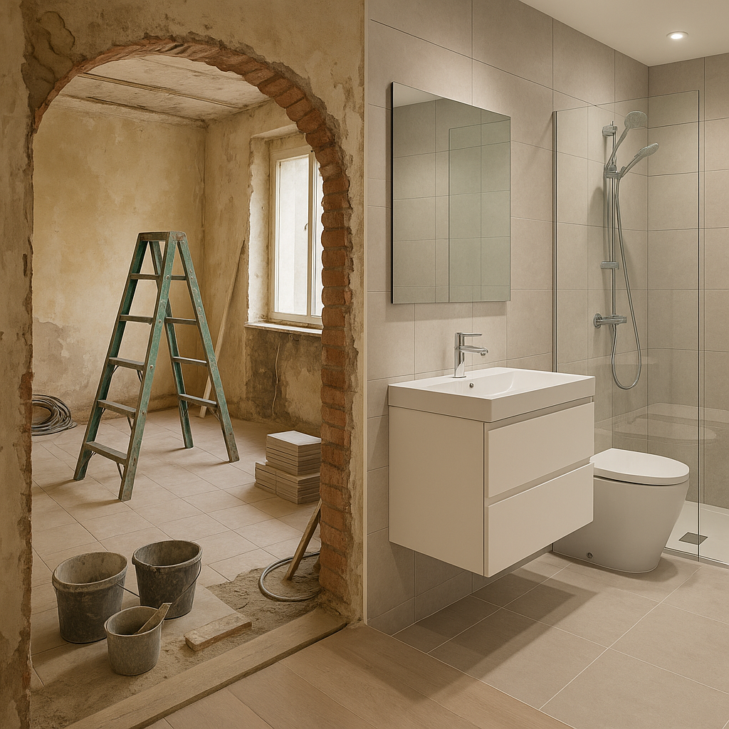 مشروع مستلمترميم حمامين قائمين وإنشاء غرفة وحمام للخادمة في الشرقية، مع تنظيم كامل لمتطلبات التنفيذ ومتابعة