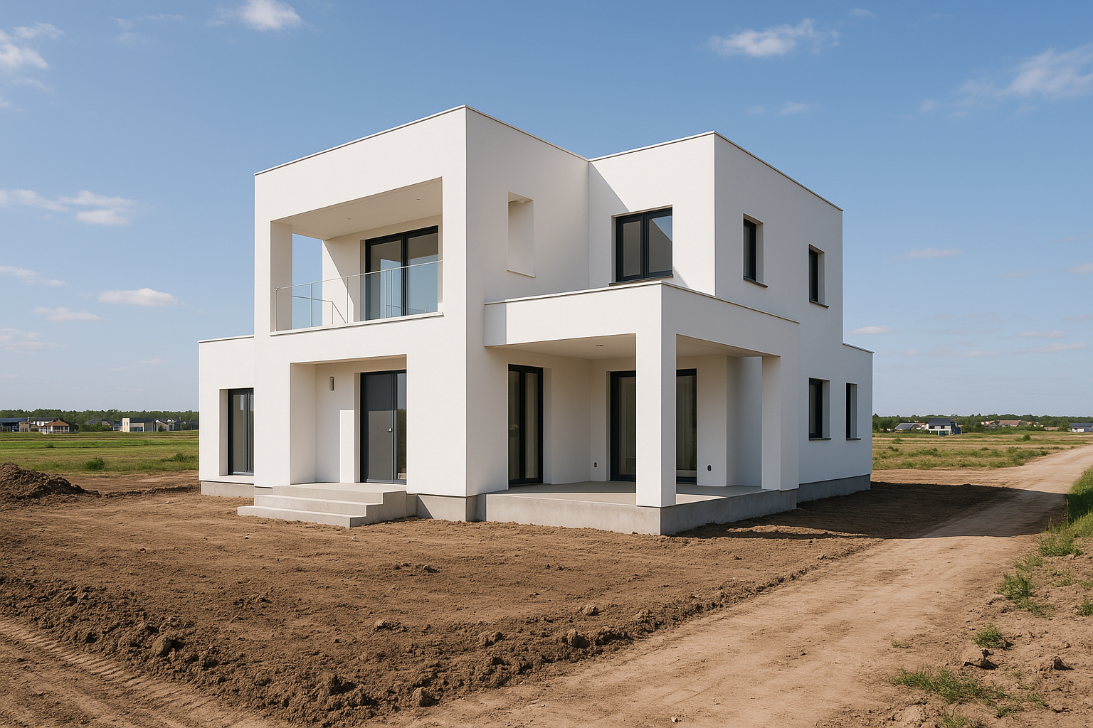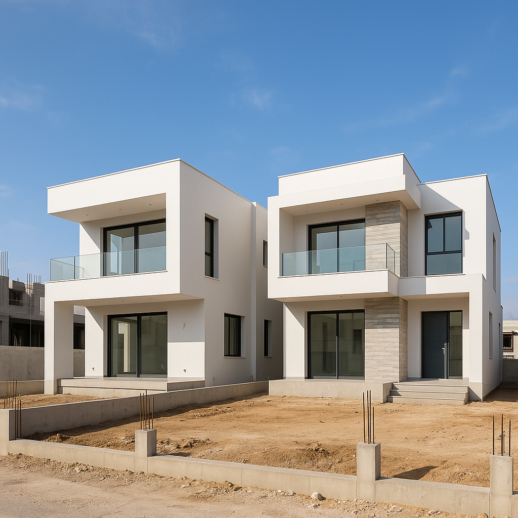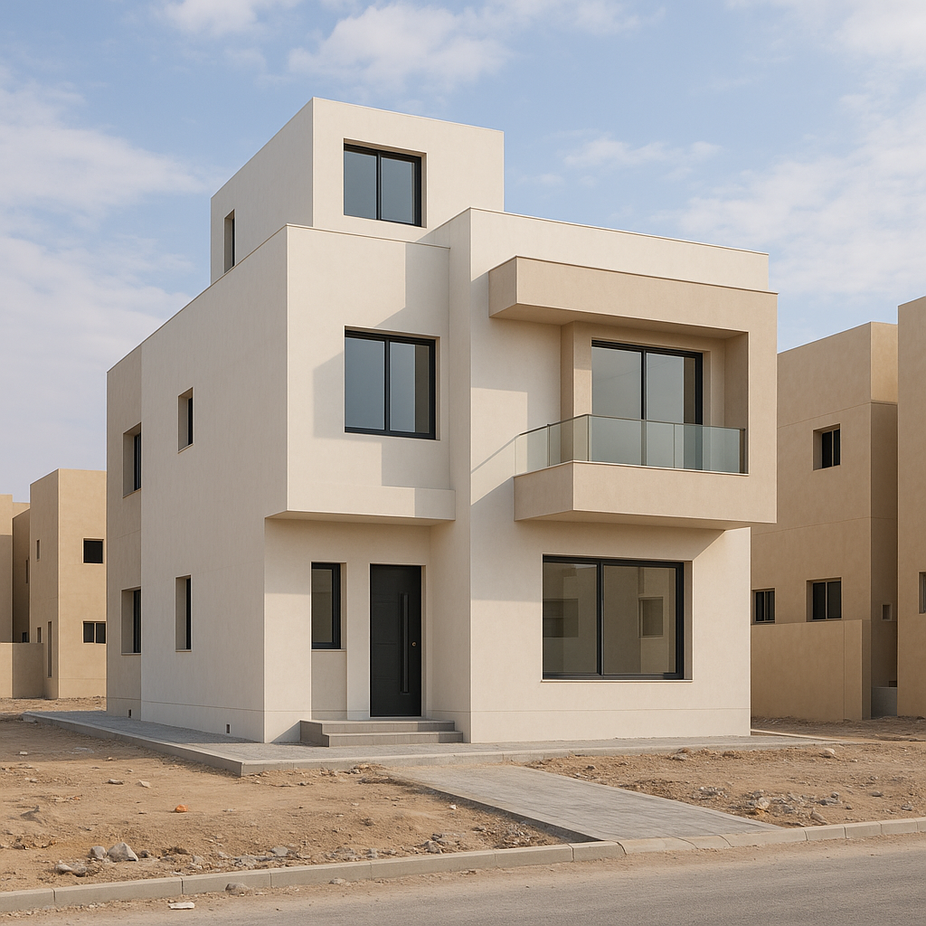مشروع مستلممشروع بناء جديد في الغربية يتضمن تصميمًا حديثًا.