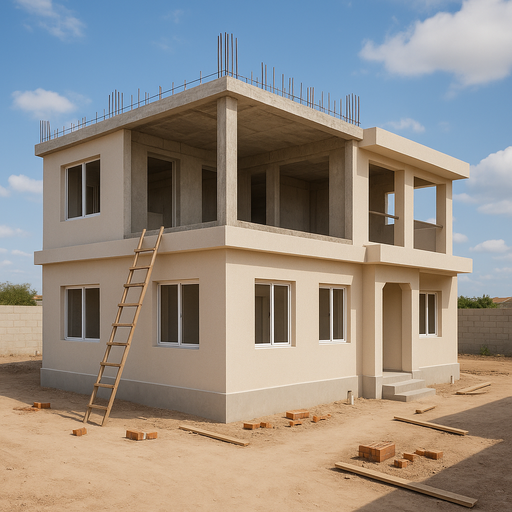 مشروع مستلممشروع بناء جديد يتضمن دورين وملحق في الغربية.