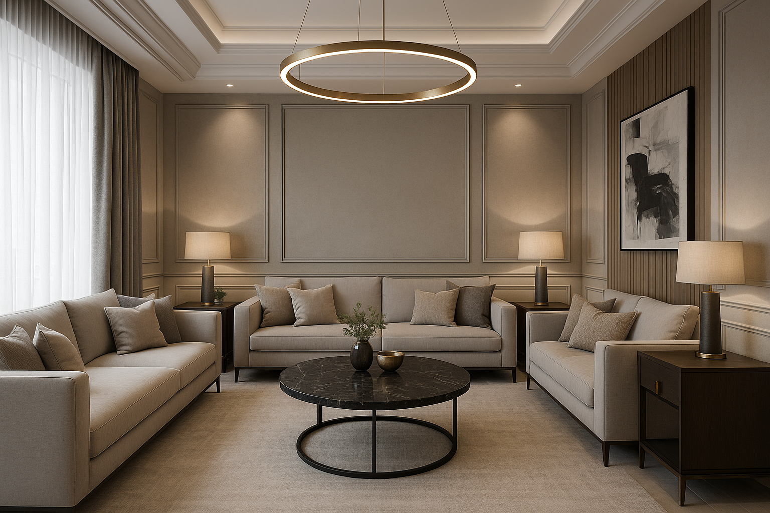مشروع مستلممشروع تشطيب مجلس في الغربية، خدمات تنظيم التنفيذ متاحة.