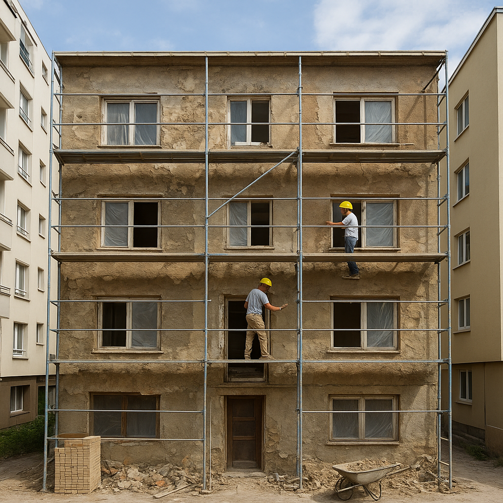 مشروع مستلمترميم عمارة سكنية في الغربية مع تنظيم متطلبات التنفيذ.