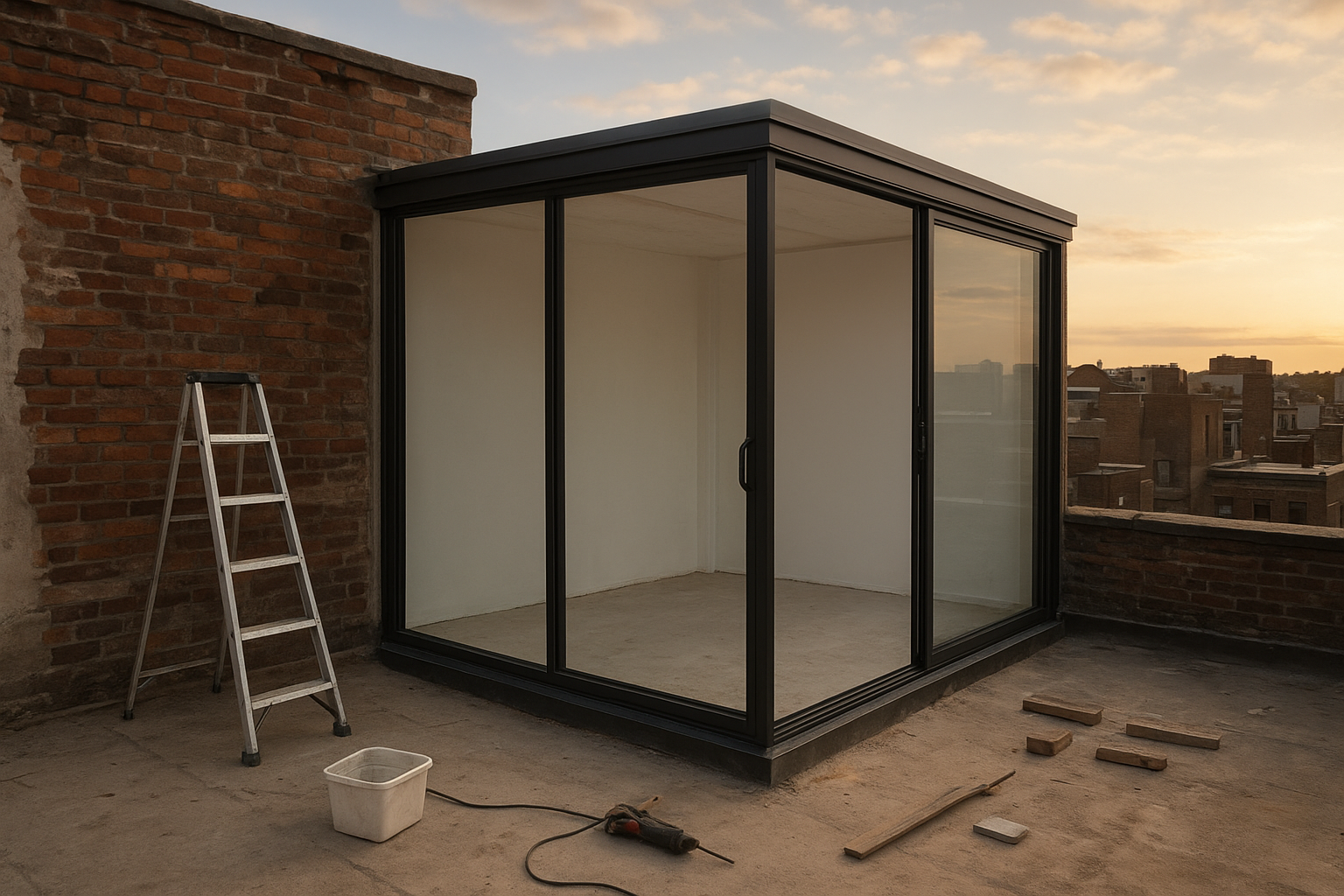مشروع مستلمترميم غرفة بواجهة زجاجية على السطح في الغربية.
