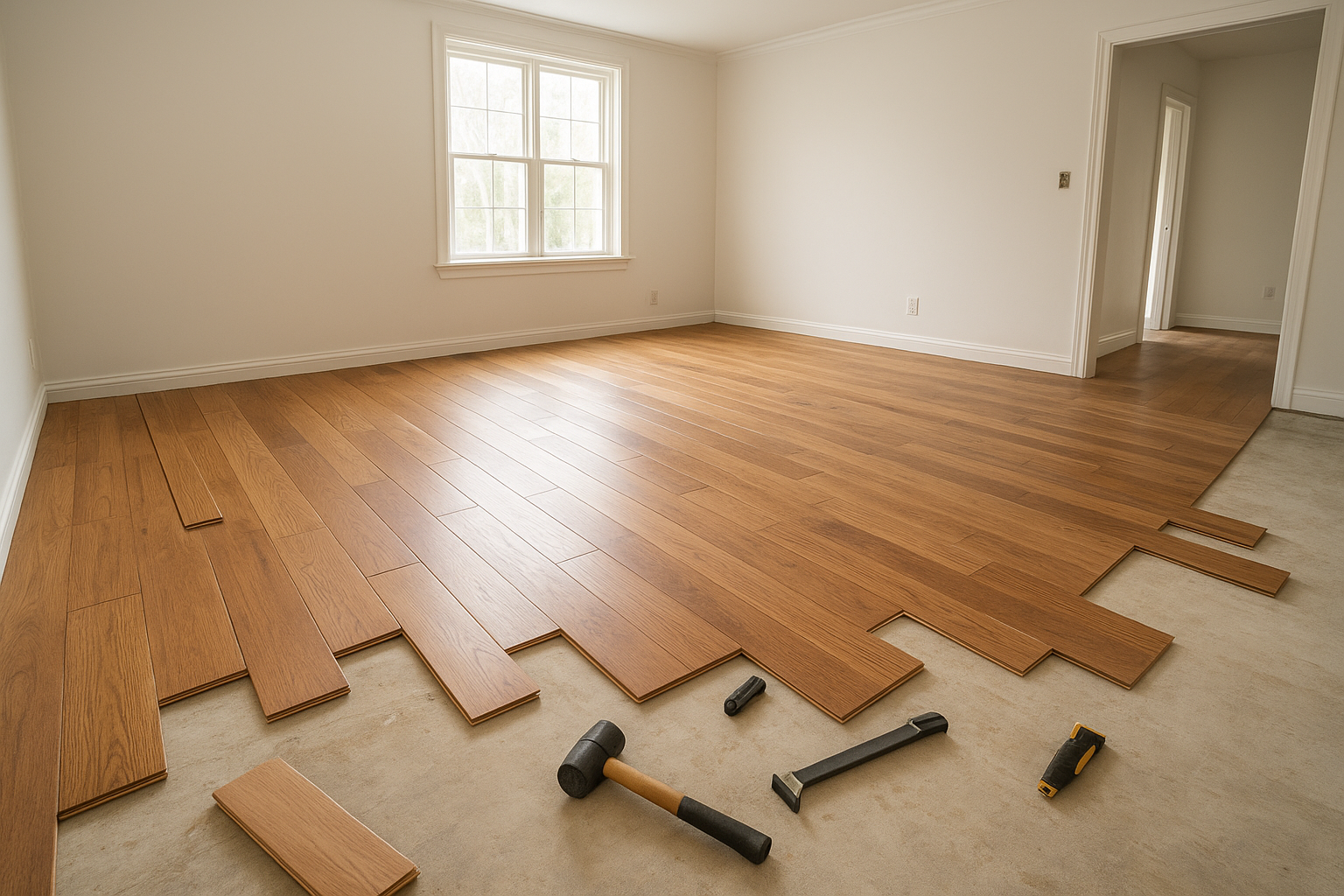 مشروع مستلمتركيب باركية ودهانات جدران وسقف لمساحة 190م² ضمن أعمال ترميم وصيانة في المنطقة الغربية، مع